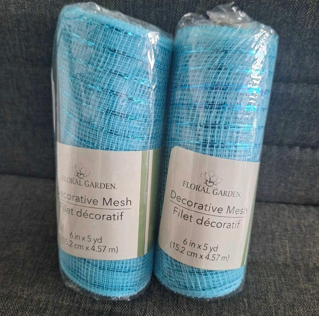 Selling two rolls of Floral Garden decorative mesh in a lovely light blue colour! Each roll is 6 inches by 5 yards (15.2 cm x 4.57 m), perfect for adding a special touch to your crafts or decorations