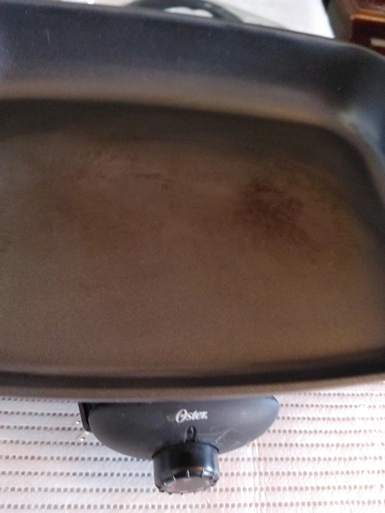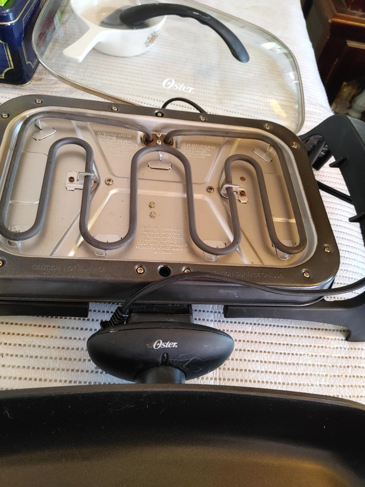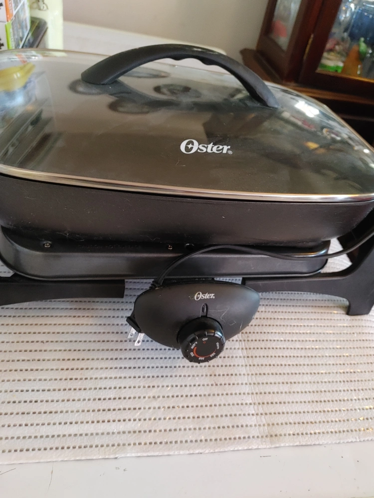 I'm selling an Oster electric skillet. It comes with a lid. There are some signs of use on the pan, but it's still fully functional for all your cooking needs