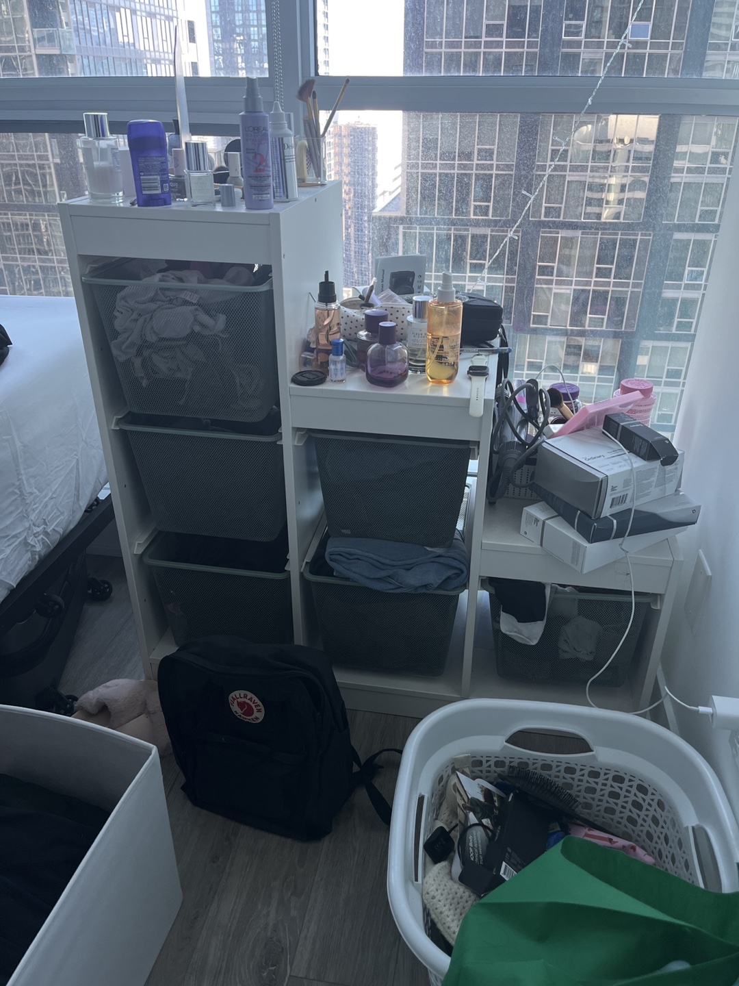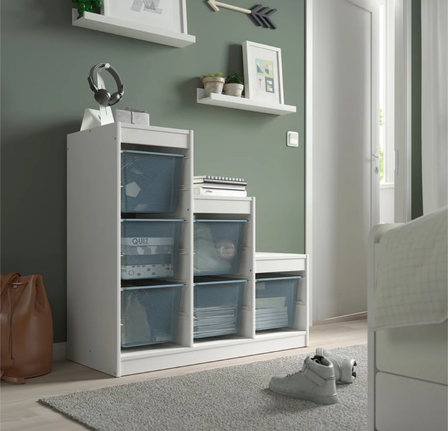 I bought it a few months ago and I’m moving so i need it gone asap. Bins are sage green though not blue, check the last pic.