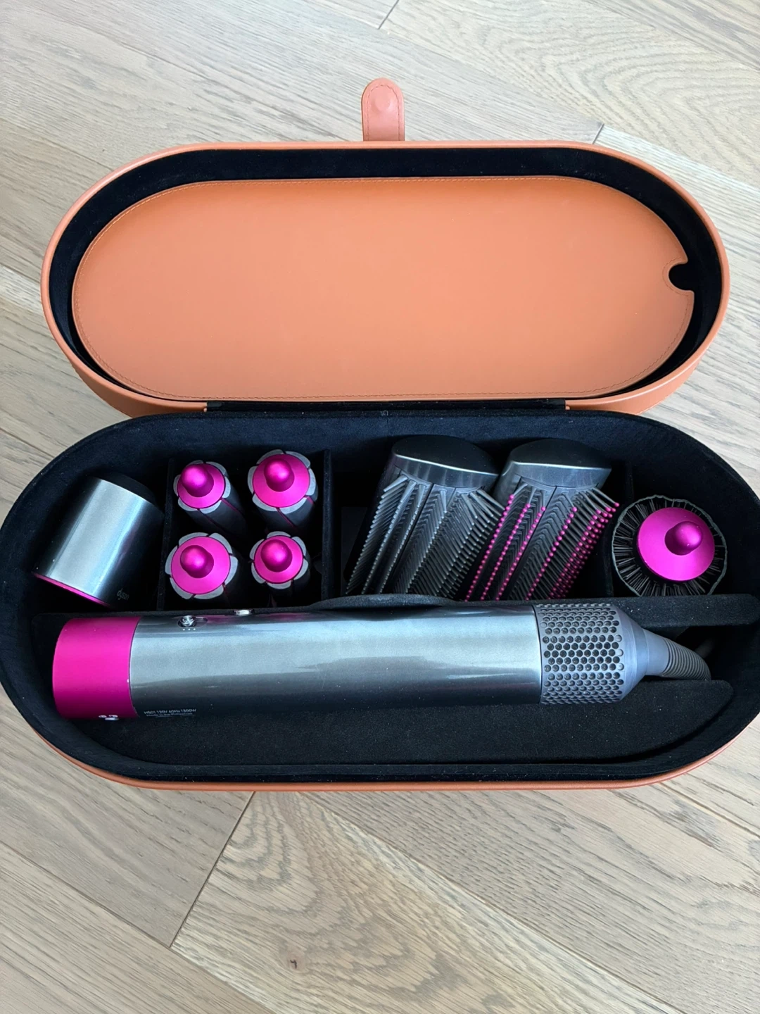 Selling a Dyson Airwrap Complete styler. It comes with all the attachments and the original case. It is in great condition with slight scratches on the outside of the box (see last image) and ready for a new home!