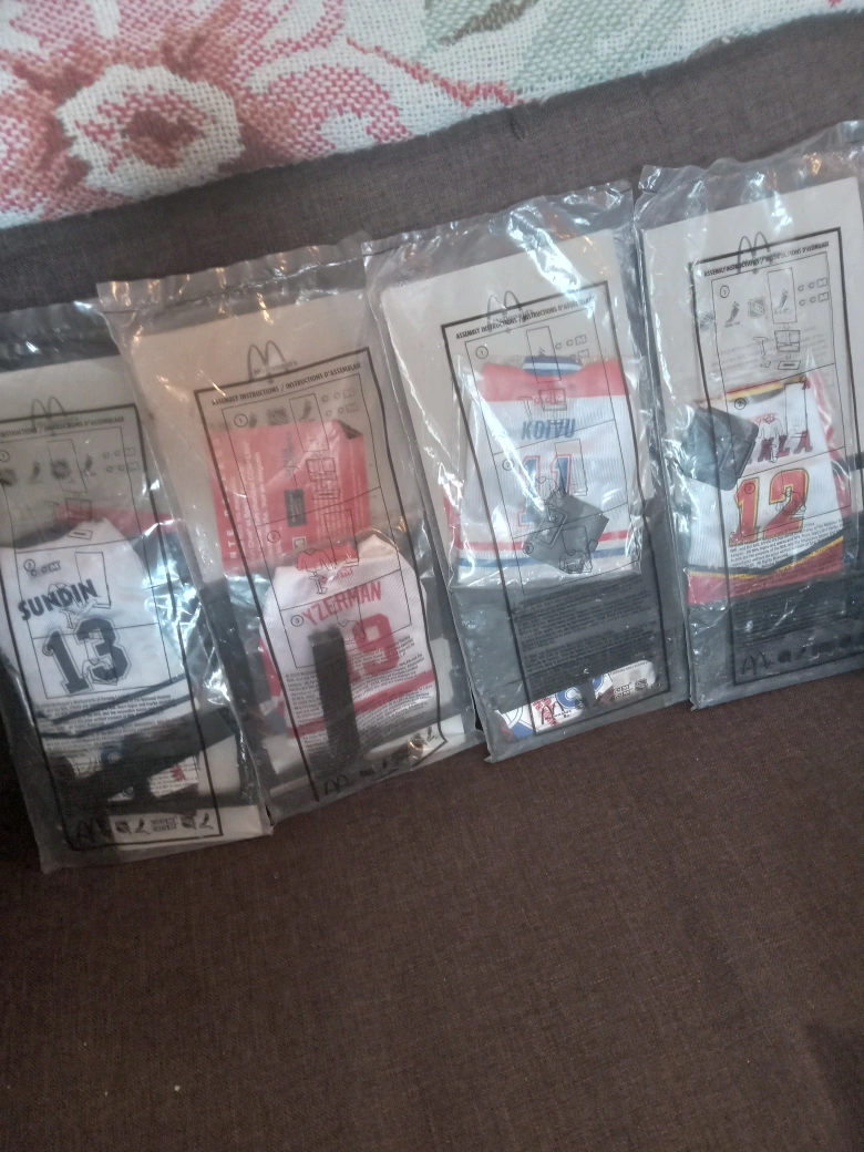 Selling a set of four McDonald's hockey player jersey . The players are Mats Sundin, Steve Yzerman, Saku Koivu, and Jarome Iginla. They're still sealed in their original packaging!
