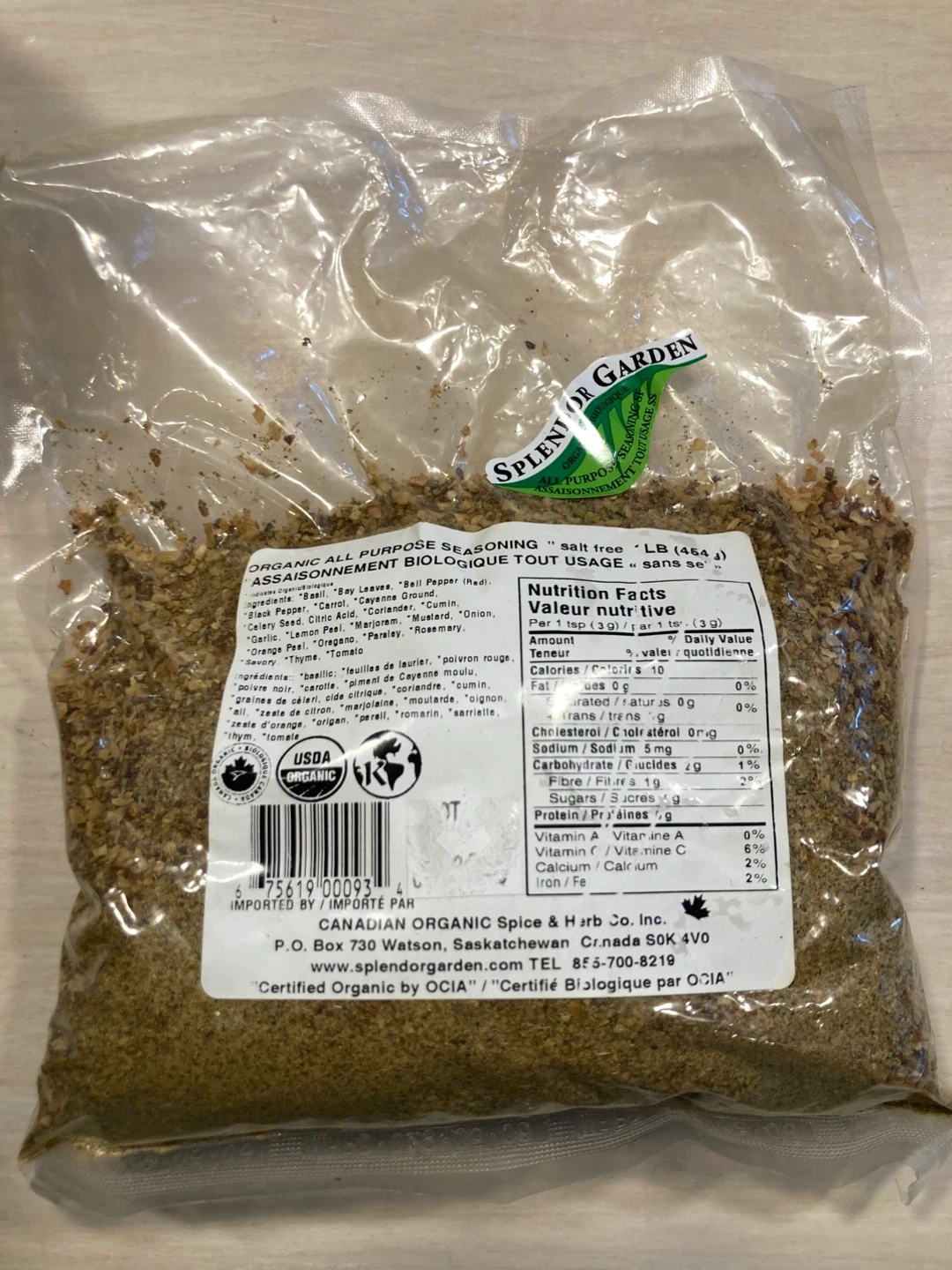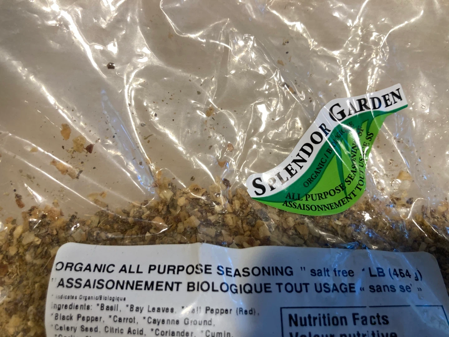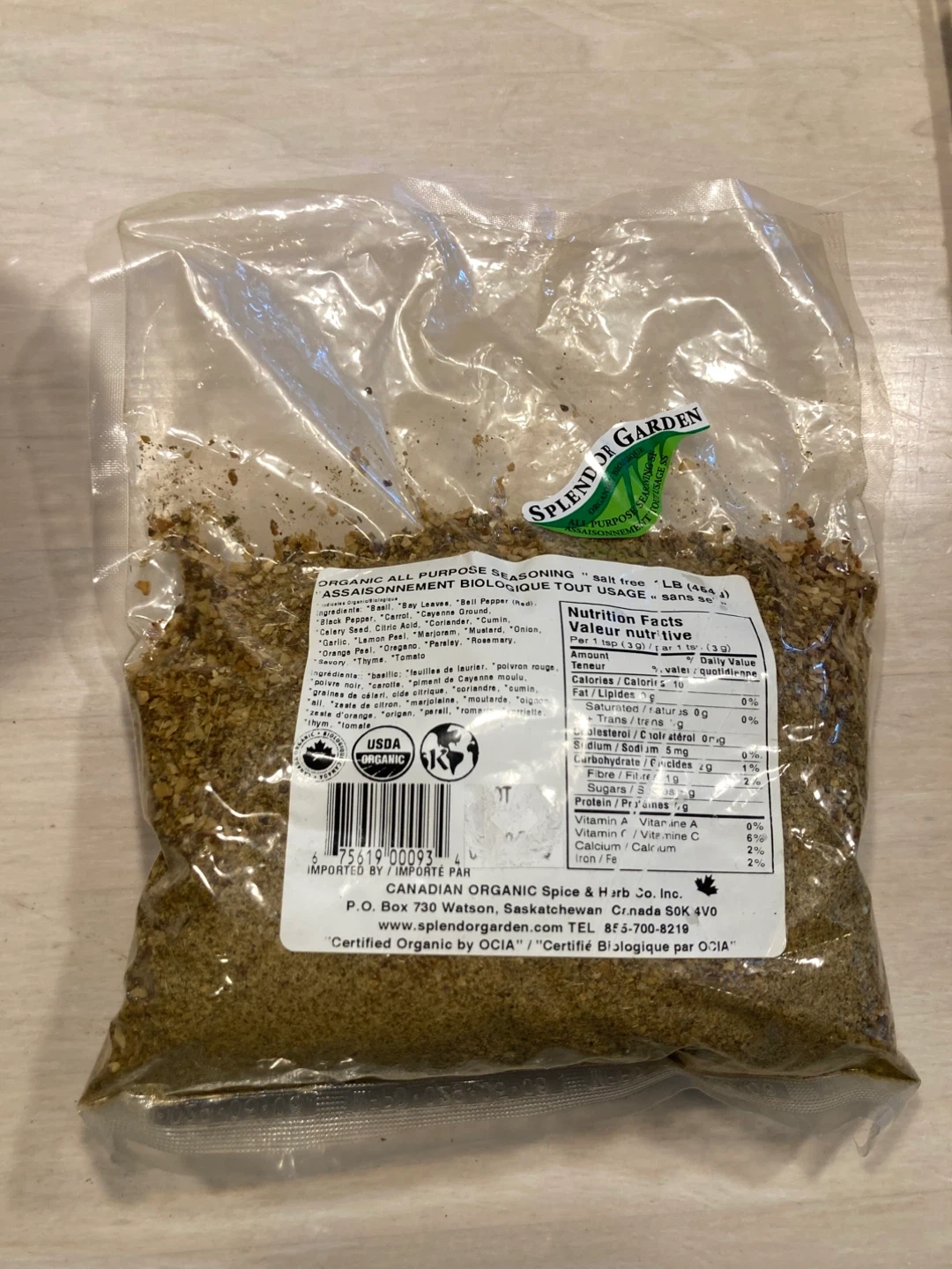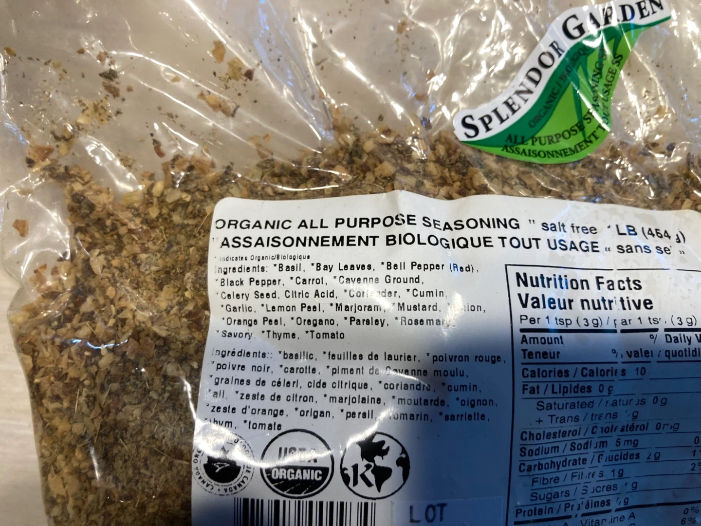 unopened package of organic seasoning. please see photo for the ingredients. it is unopened, organic, and high quality. it includes some cayenne as well as herbs, garlic, and assorted vegetables. ๐ ๐ฟ ๐ฅ 454 g