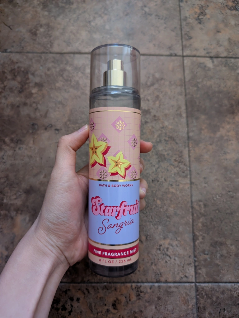 Selling a Bath & Body Works Starfruit Sangria Fine Fragrance Mist! It's an 8 fl oz bottle. The fragrance notes include golden starfruit and chilled sangria