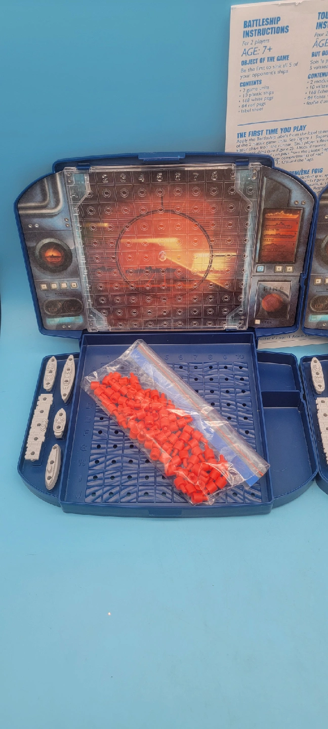 Selling a Battleship game by MB Games! It's a classic strategy game for ages 7 and up. Includes all the pieces, ships, and pegs for two players. Get ready for some naval combat! Please look closely at the attached photos to go along with the description and the condition of the item. Willing to ship at the Buyers expense. Please see my many other listings. Thank you for looking. Have a Happy Day! 🙂