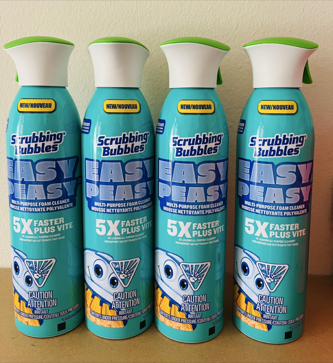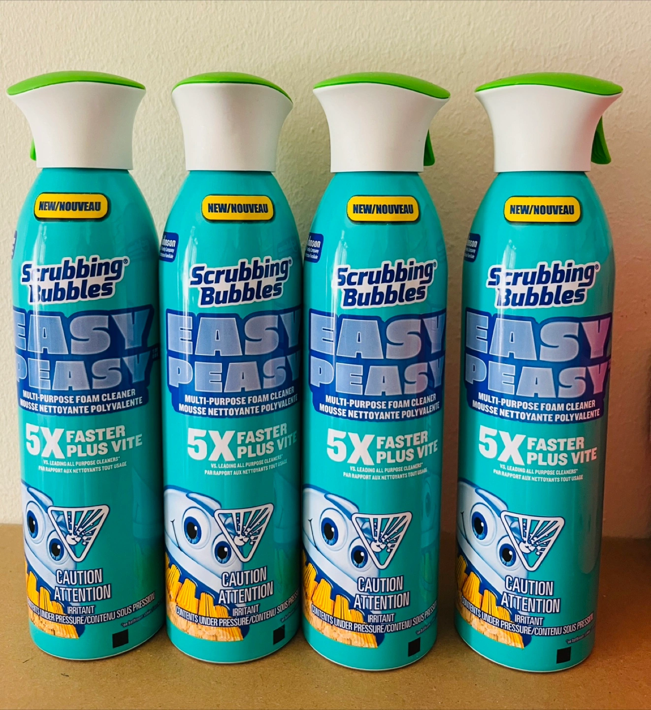 Selling four cans of Scrubbing Bubbles Easy Peasy multi-purpose foam cleaner. They're advertised as being 5x faster than leading all-purpose cleaners. Perfect for quick and easy cleanups!