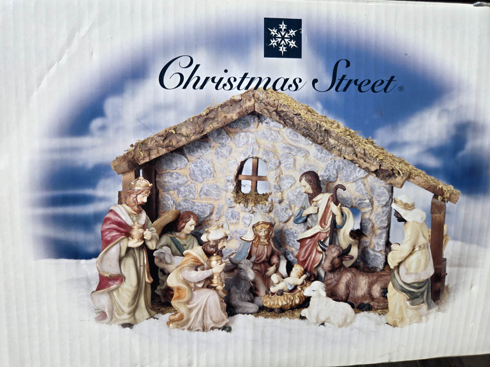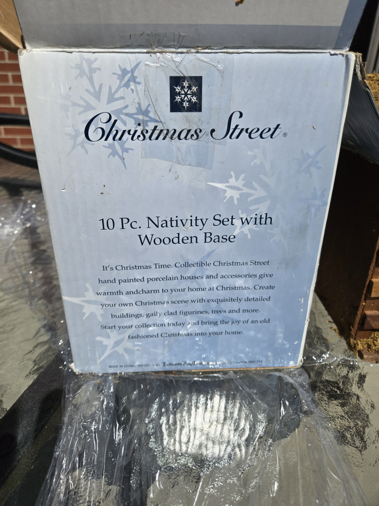 Selling a Christmas Street 10-piece Nativity Set with Wooden Base