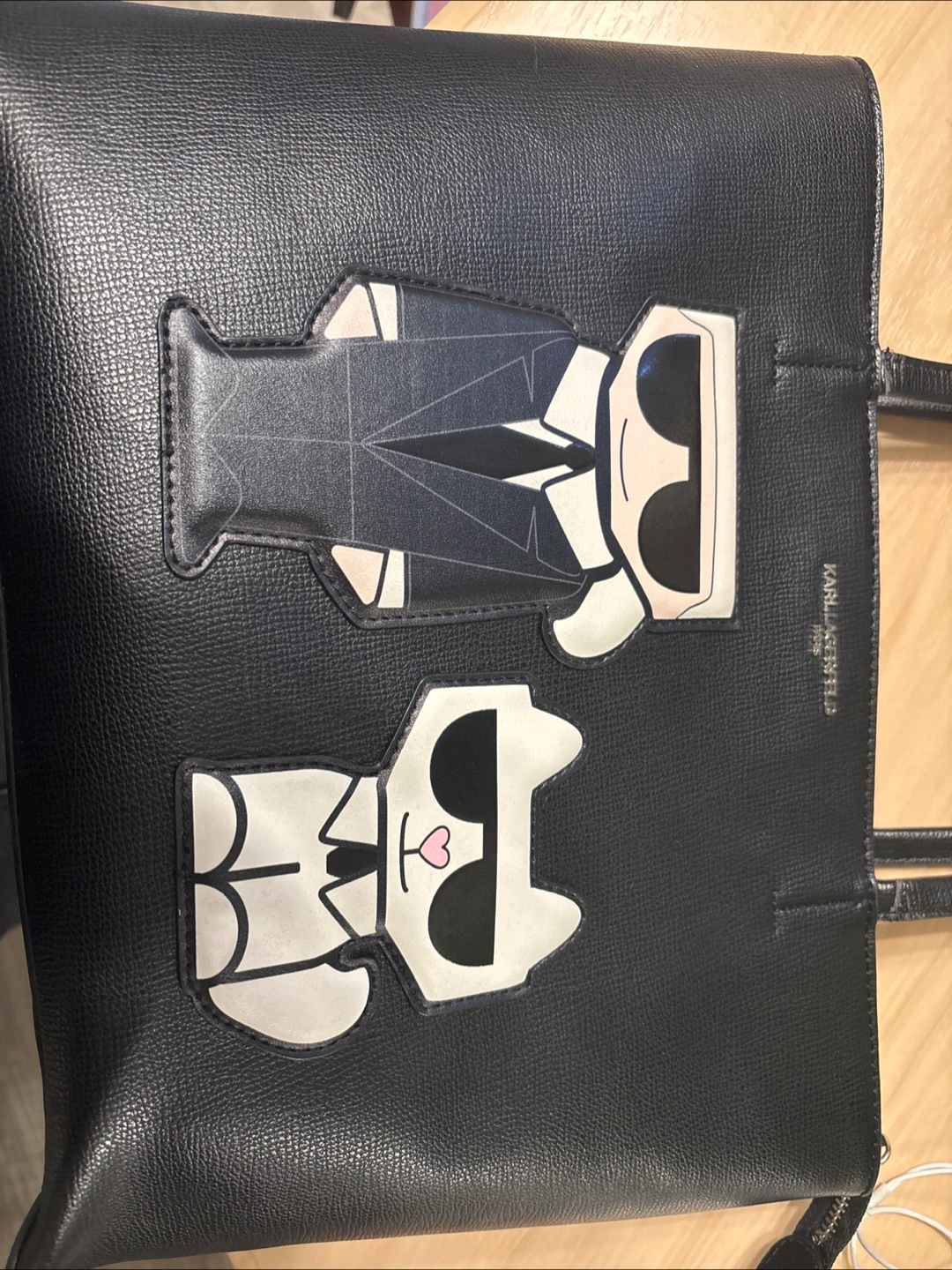 Selling a Karl Lagerfeld Paris black tote bag! It's in great condition and ready for a new home. This stylish tote is perfect for carrying your essentials with a touch of designer flair. There are slightly damage in the handle but overall great quality