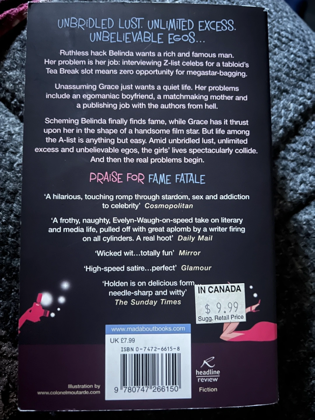 Selling 'Fame Fatale' by Wendy Holden. This book is a fun read about the lives of celebrities and those around them. The suggested retail price on the back is $9.99. A great addition to your book collection!