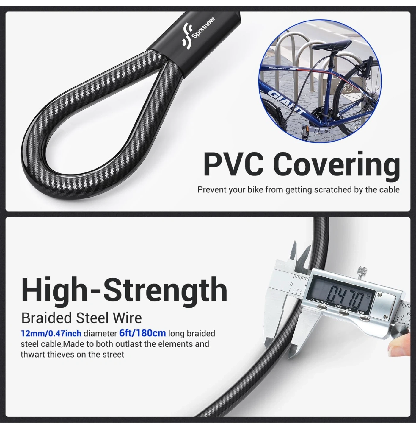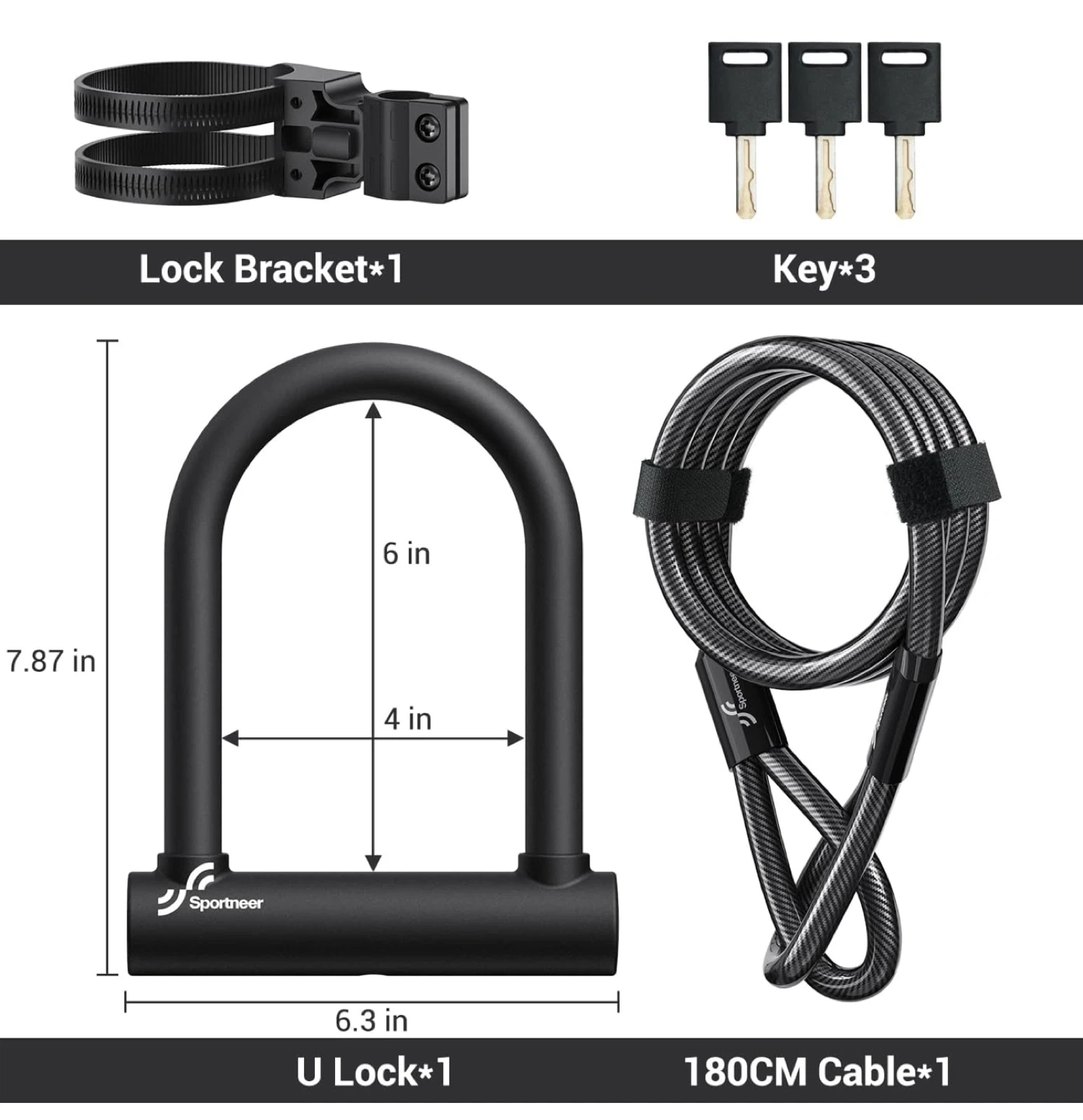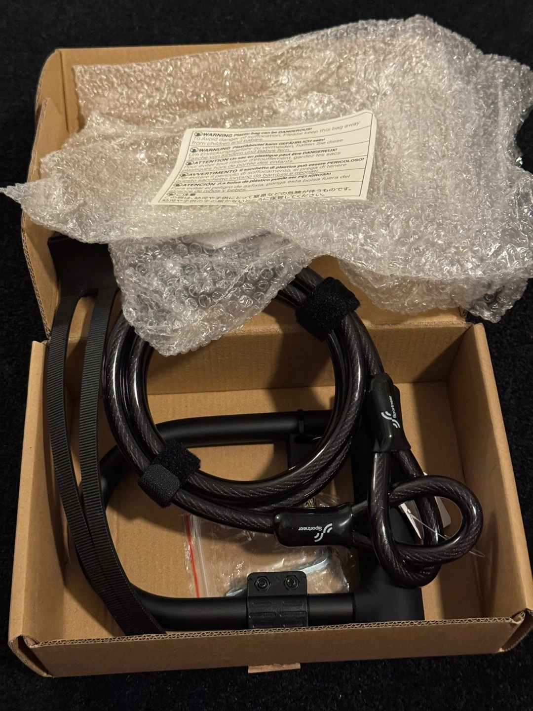 * Address - MEET HERE Starbucks 8010 Bathurst St Vaughan, ON L4J 0B8 - New - No trades - Cash only. No e-transfers. • Security Features: Made of high-performance steel, resistant to cutting, leverage, and drilling. • Additional Protection: Comes with a 6ft steel cable for locking wheels, frame, or other items. • Portability: Lightweight and portable, easily attached to bikes with a mounting bracket.