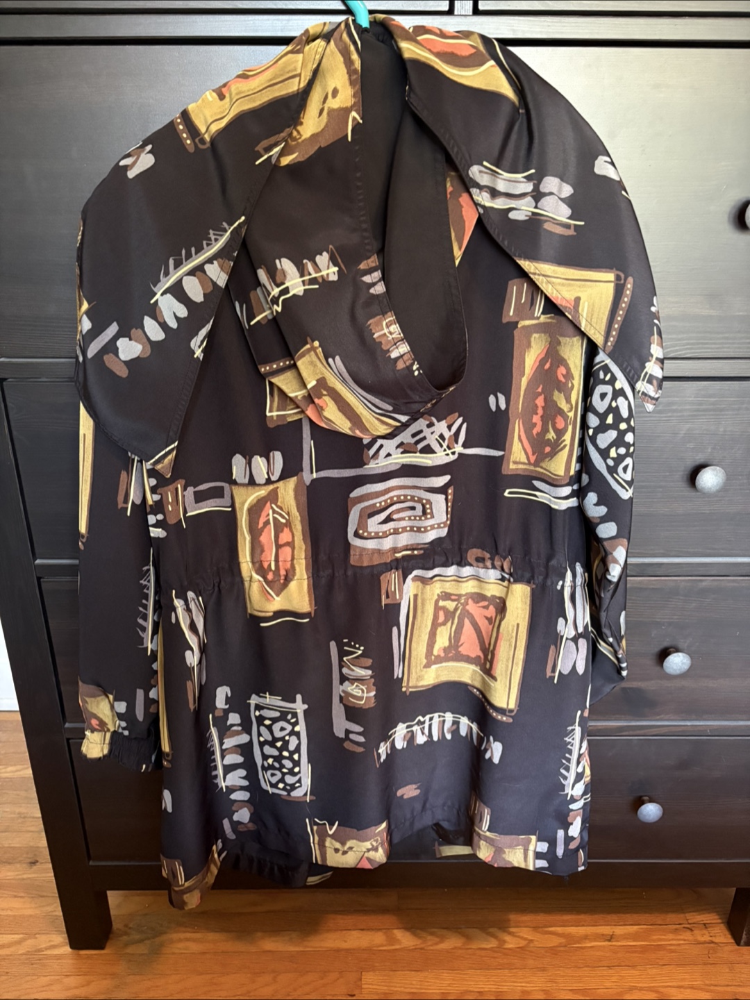 * Drawstring waist and hood