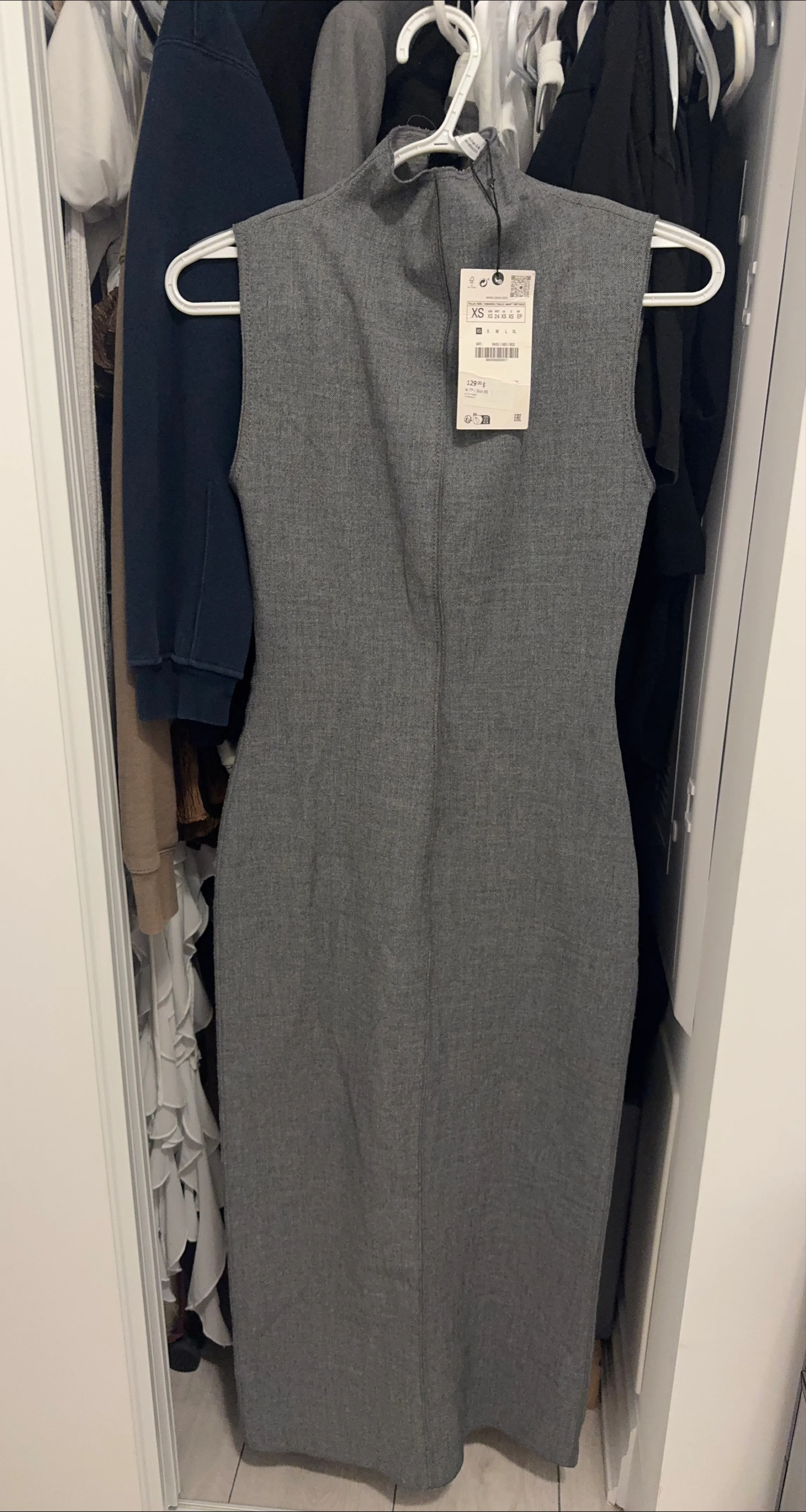 Selling a brand new with tags Zara dress! It's a stylish grey sleeveless dress in size XS. Originally bought for $129.00. Perfect for a sophisticated look!