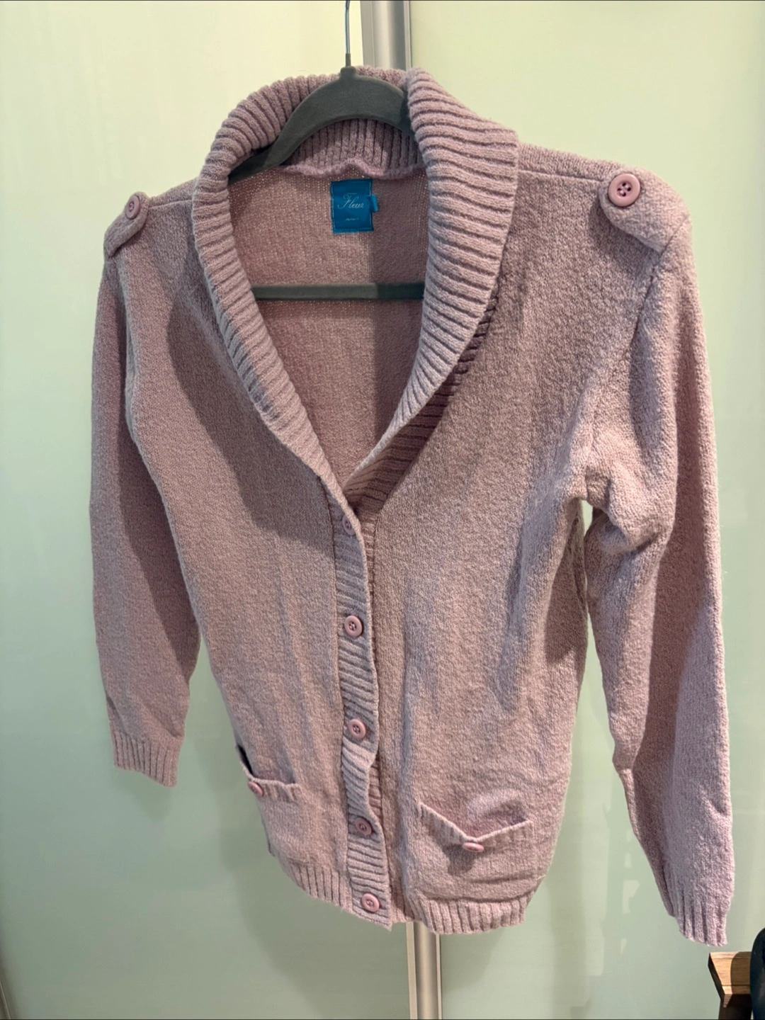 A cute Fleur cardigan in a lovely lilac colour! It's a size small and perfect for layering on those cooler days. It's in great shape and ready for a new home. Fits XS to S. No piling. Like new.
