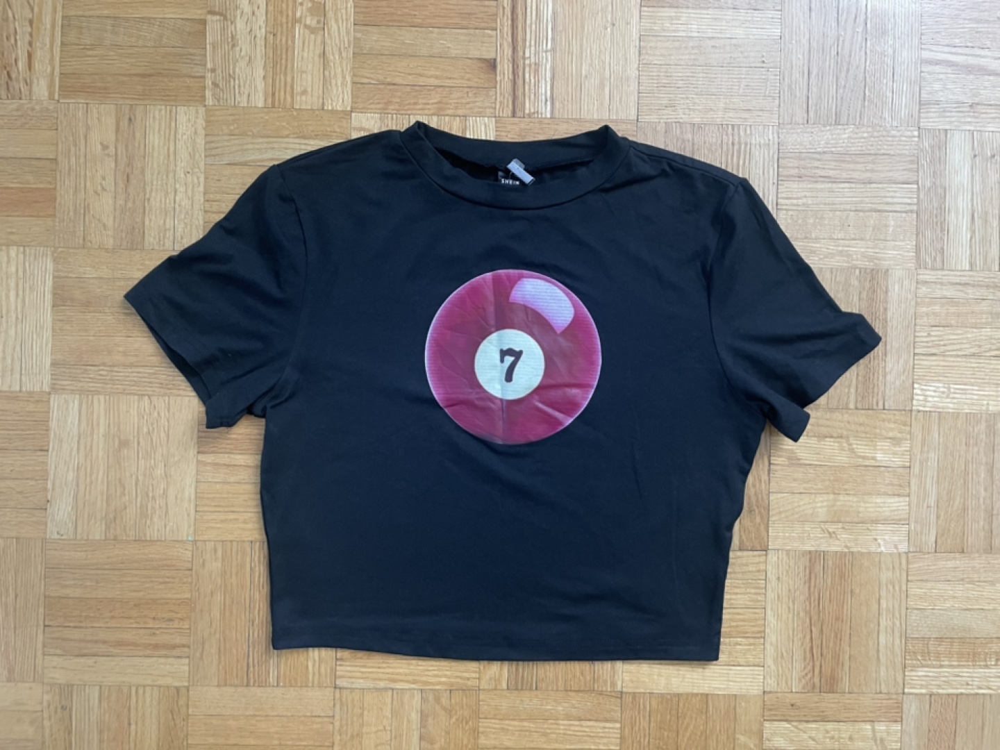 Selling a Shein black crop top with a cool design! It's a size small and in great condition. Perfect for casual wear!