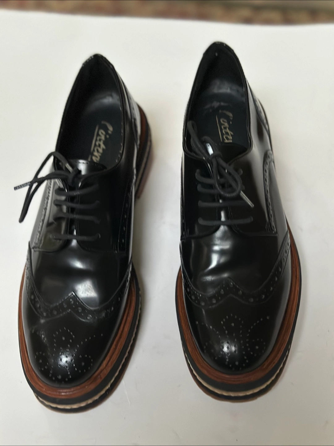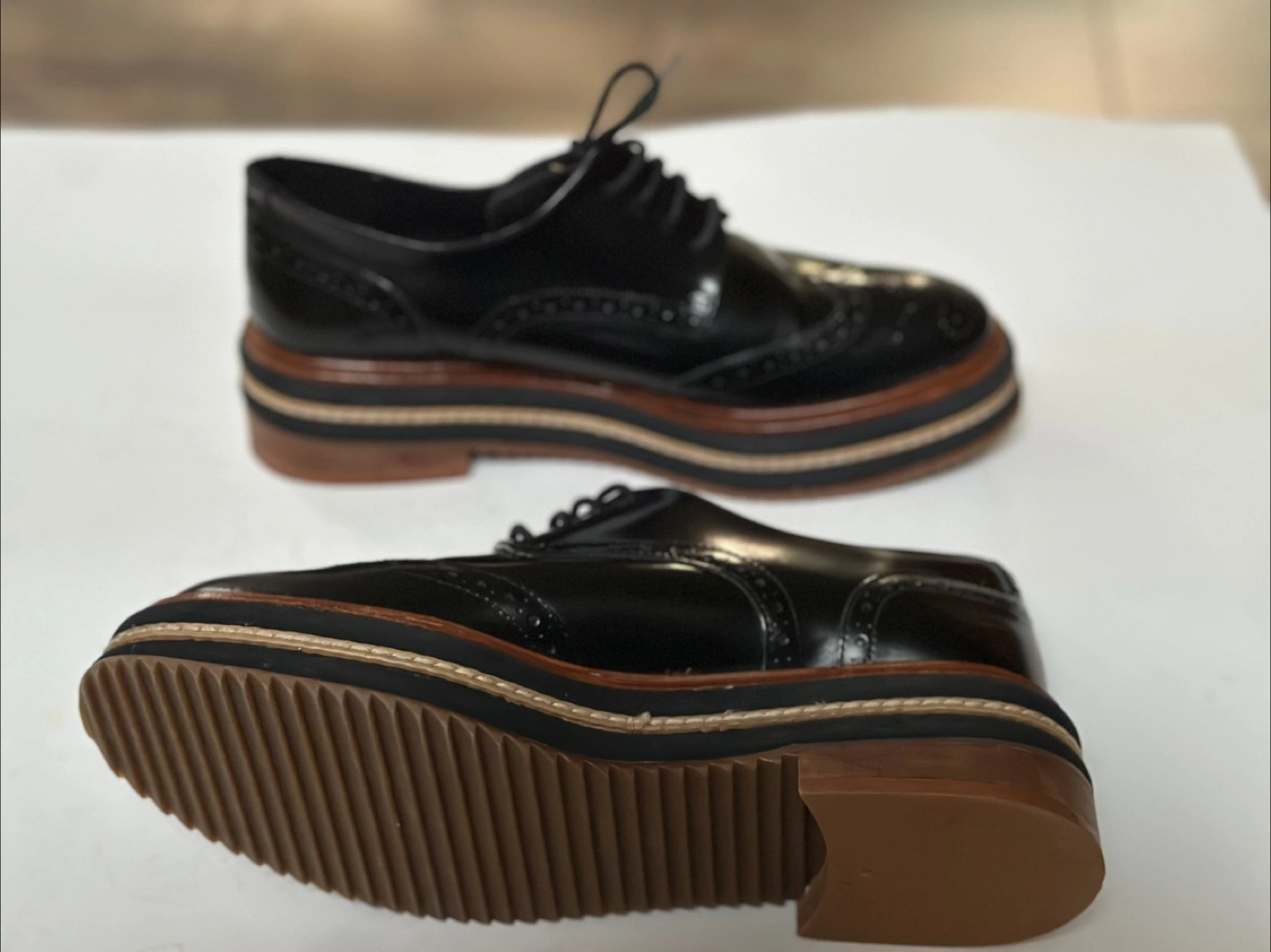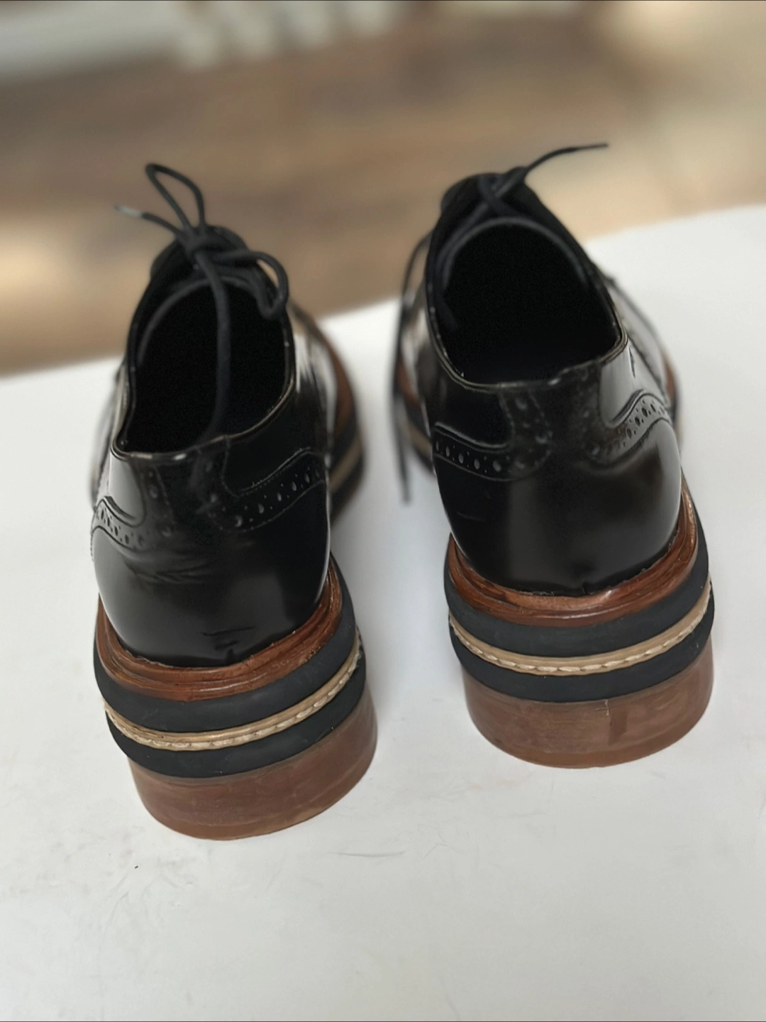 65These L'intervalle leather platform oxfords are a stylish addition to any wardrobe! They feature a classic brogue design with a modern platform sole. The shoes are in great condition and ready for a new home. These shoes have been meticulously cleaned and sanitized. From a smoke free, pet free home. Pick up in Alta Vista.