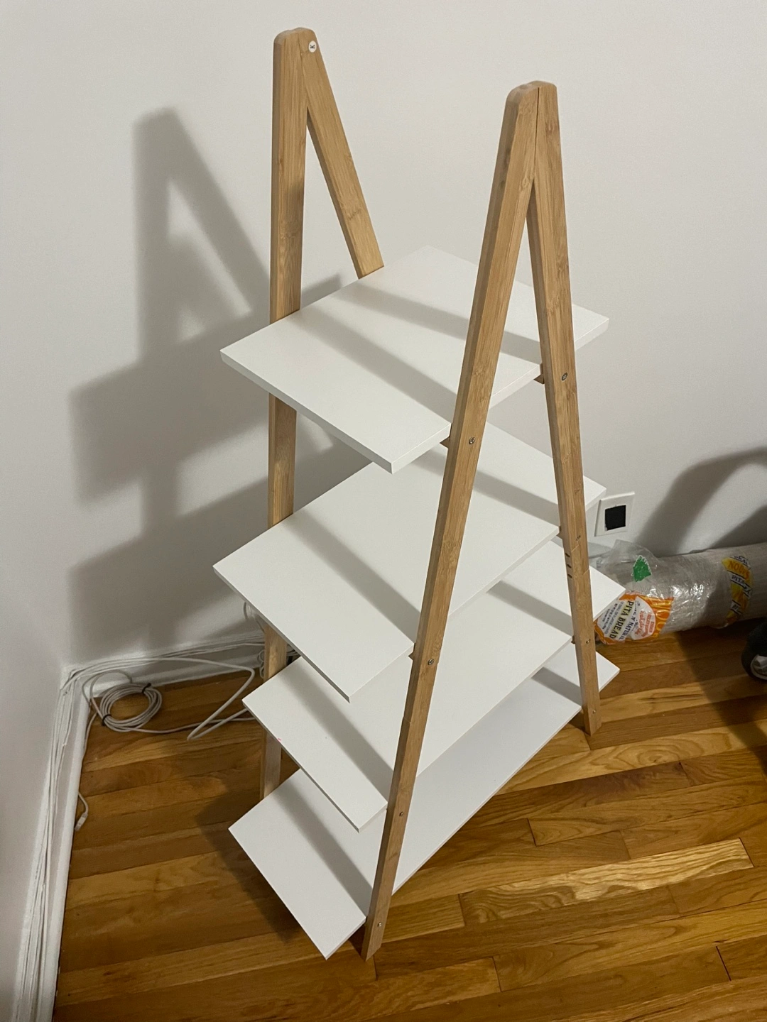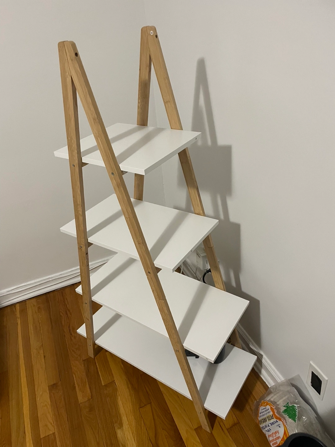 Selling a cute ladder shelf! It's perfect for adding a touch of style and storage to any room. The shelves are white and the frame is a light wood color. Great for books, plants, or decor