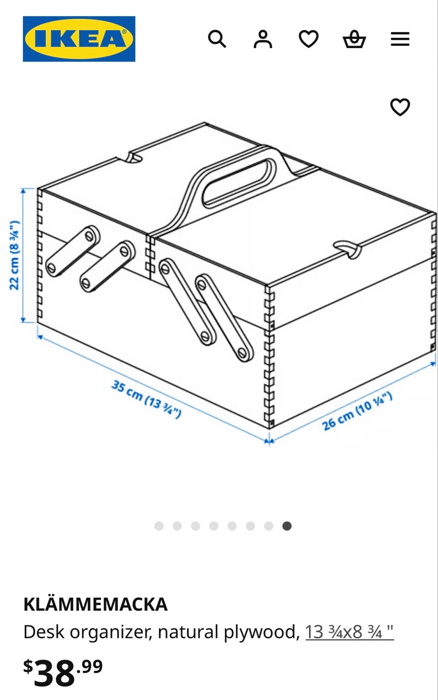IKEA KLÄMMEMACKA pine wooden desk organizer - Brand New