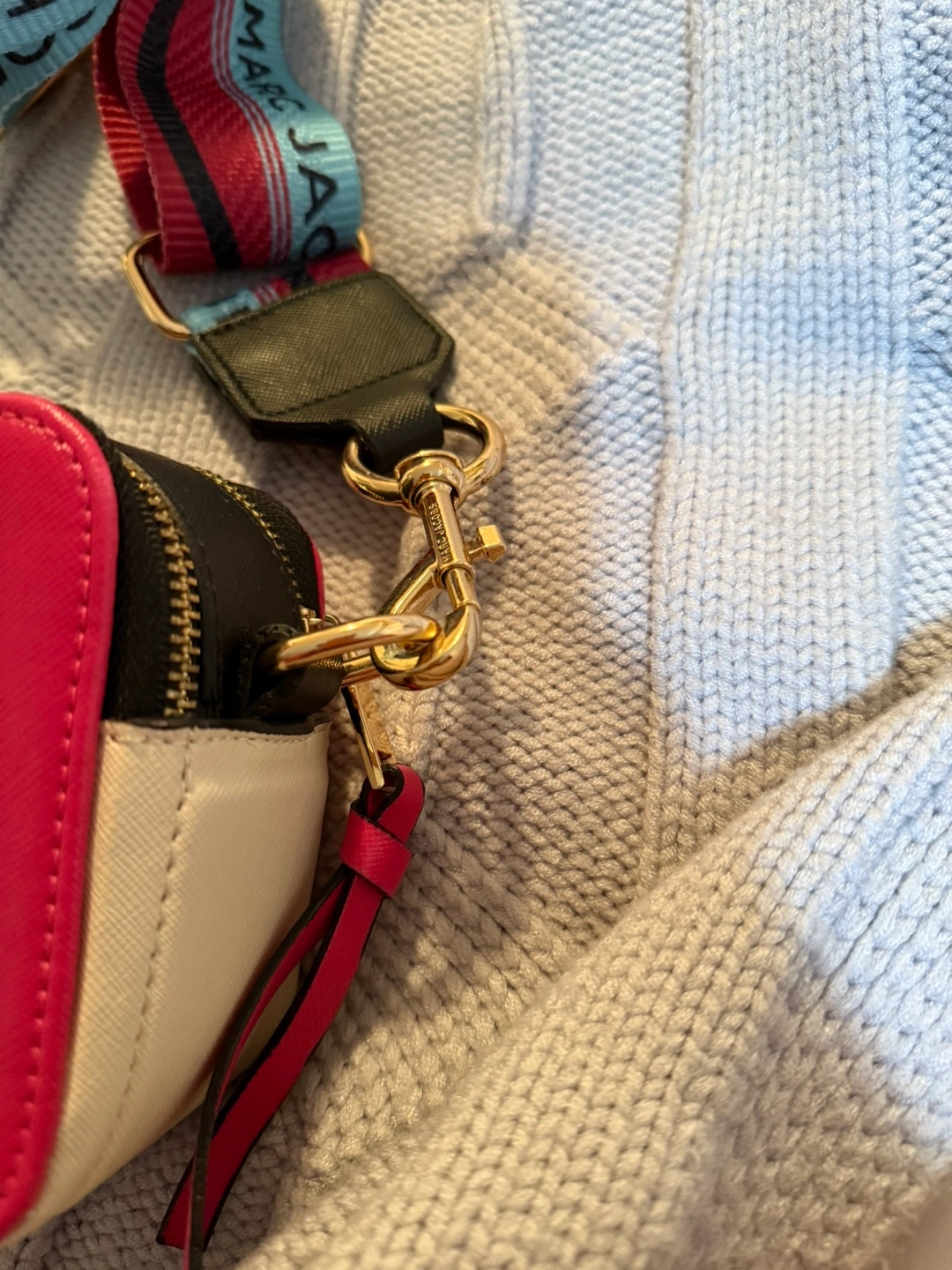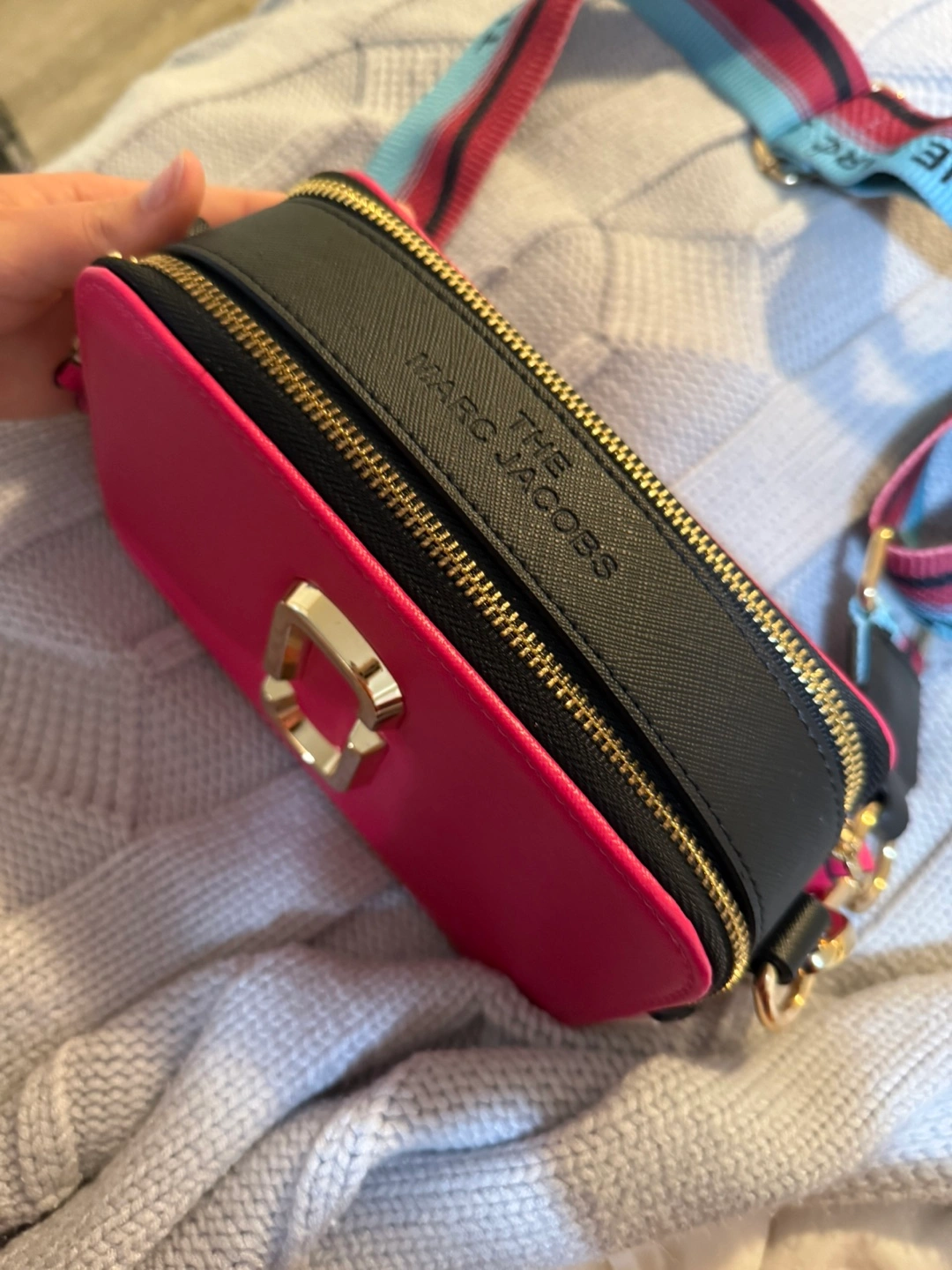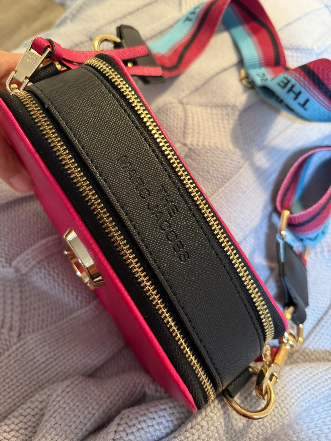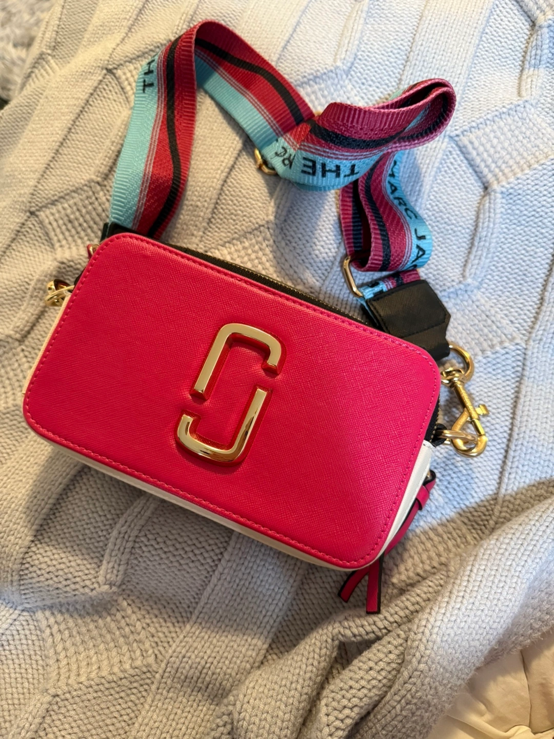 Selling a cute Marc Jacobs Snapshot crossbody bag in pink! It's in great condition and has a fun, colourful strap. Perfect for adding a pop of colour to any outfit
