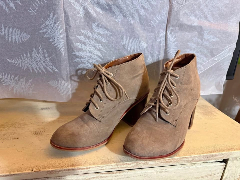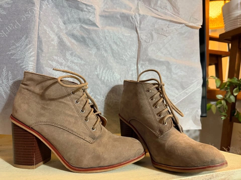 Faux suede heeled booties in good condition. Only worn a couple of times, selling because they no longer fit.