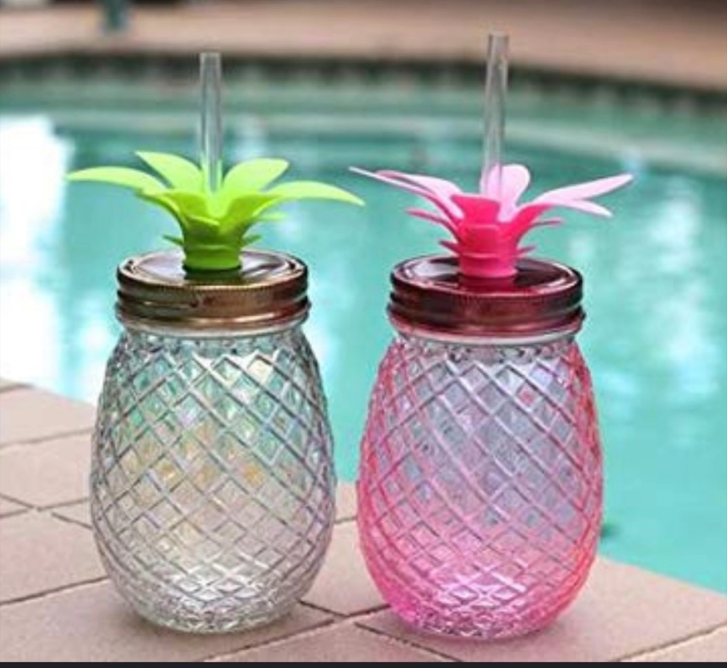 These jars each have a 480 ml capacity and come with sturdy handles, twist-on lids, and straws.