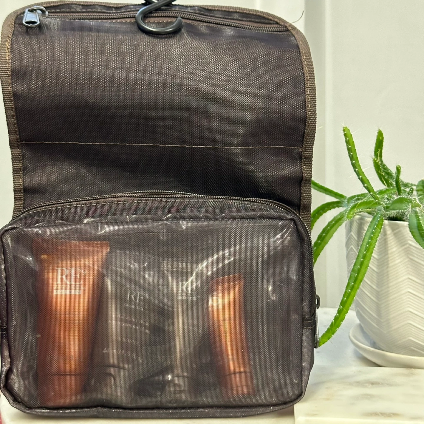 - Travel Shower Bag (hangable, 2 zippered pockets)
