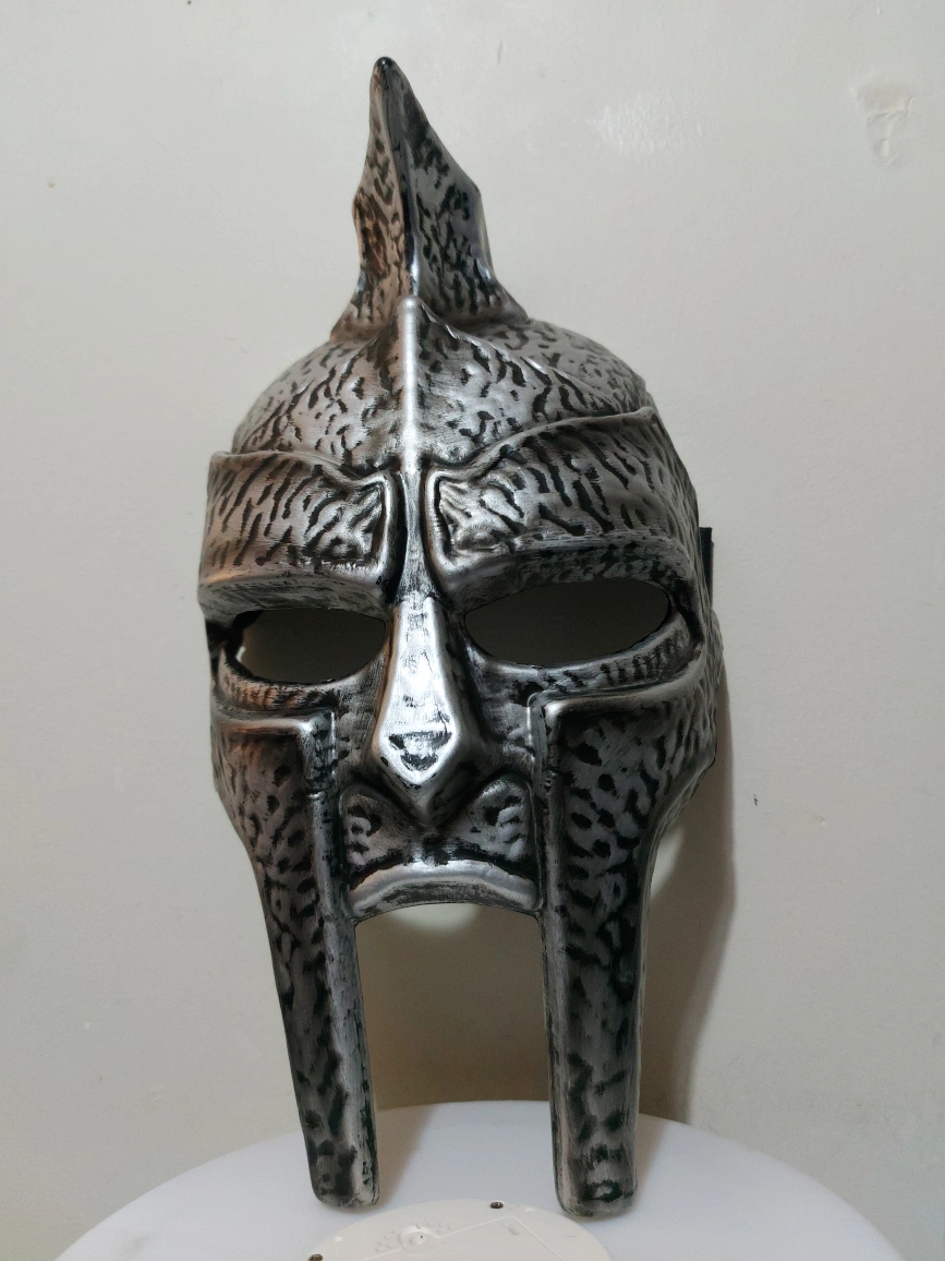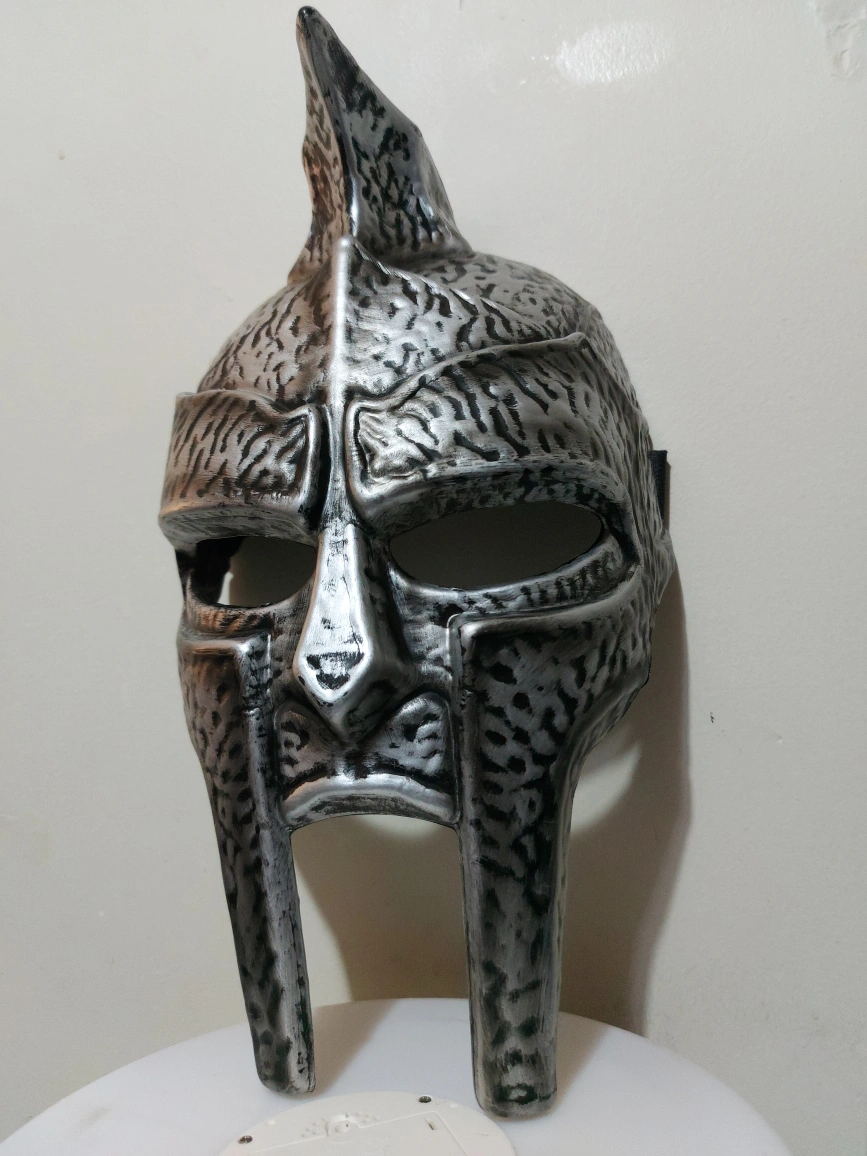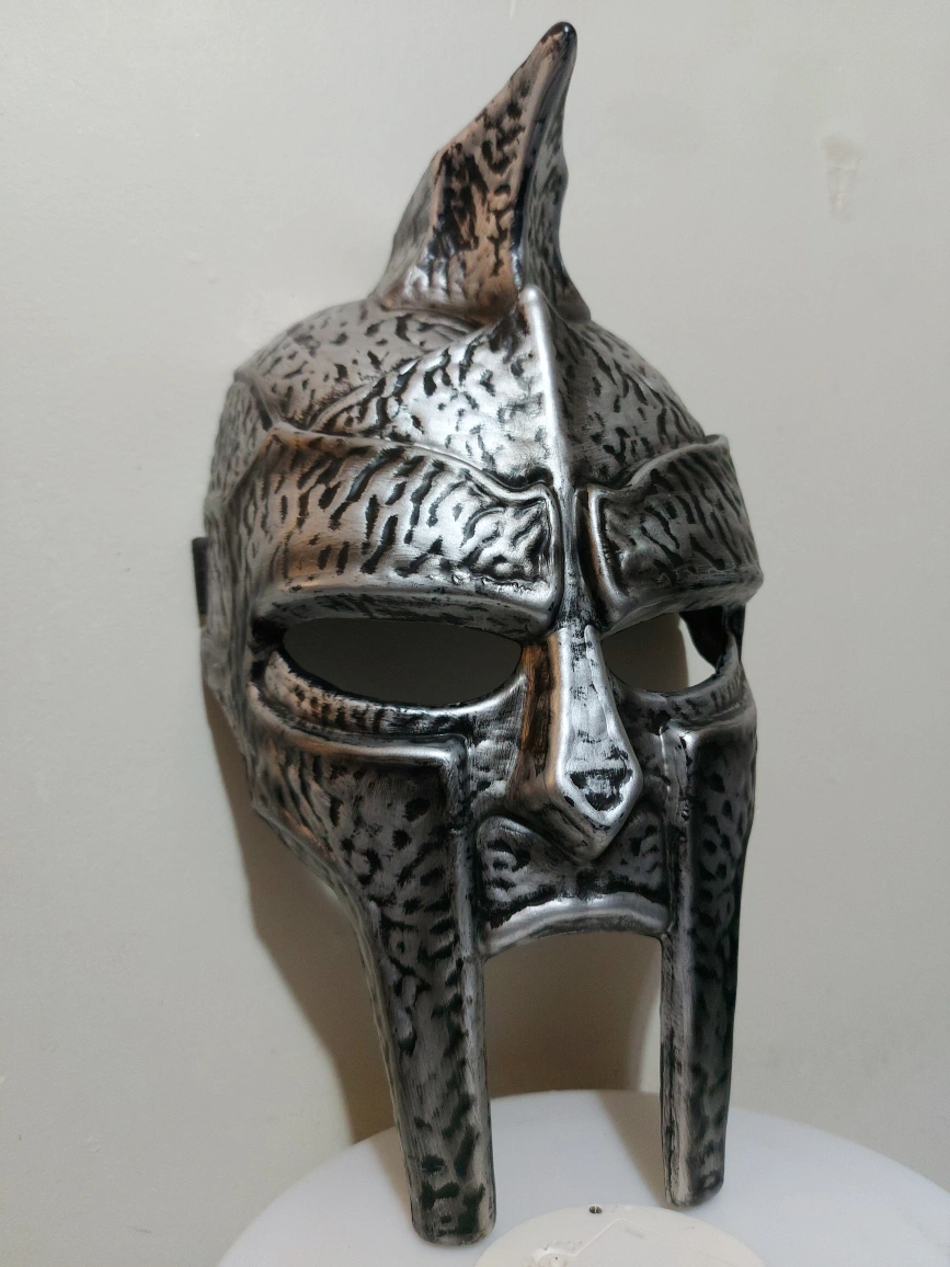 Selling a gladiator helmet replica. It's silver in colour and looks great for display or cosplay! It's in great condition.