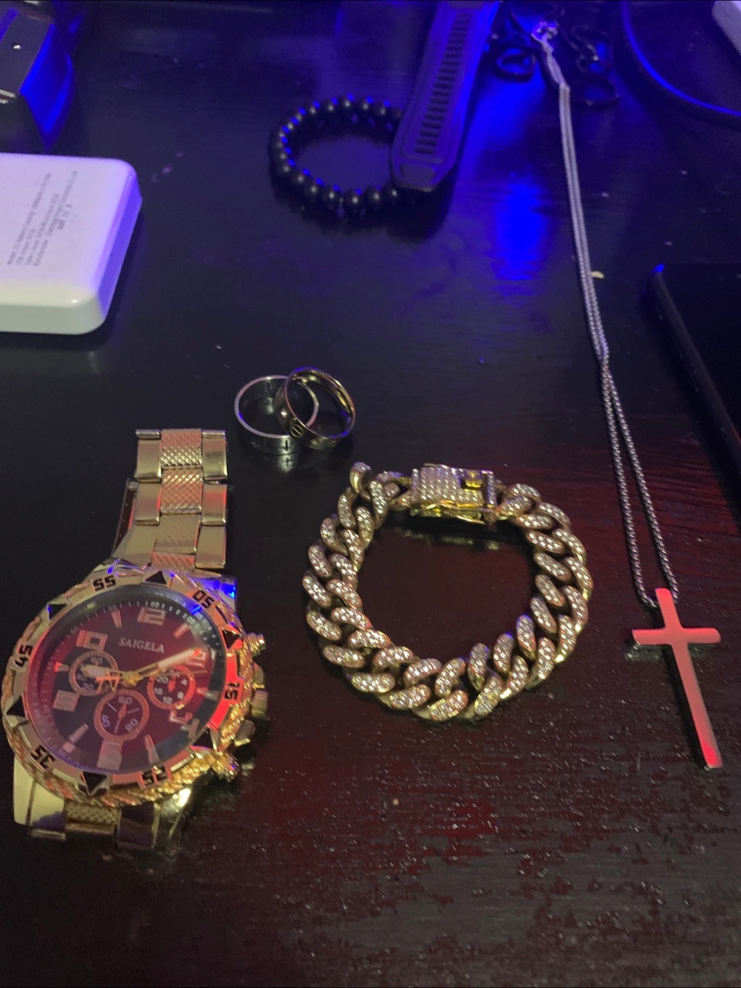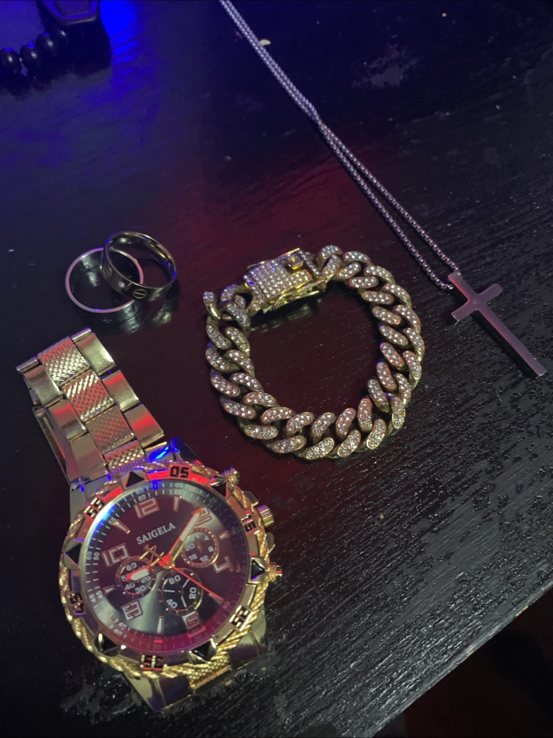 Selling a men's Saigela watch. It's gold in colour and has a unique design. Great for adding some bling to your style!