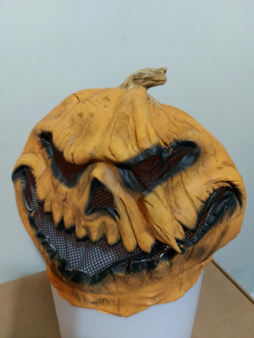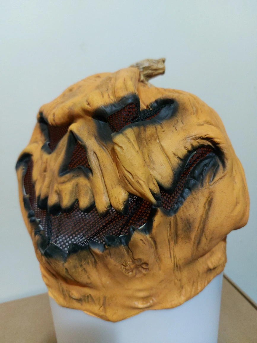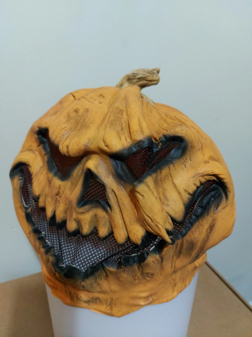 Get ready for Halloween with this pumpkin mask! It's perfect for adding a spooky touch to your costume. The mask is in good condition and ready to scare!
