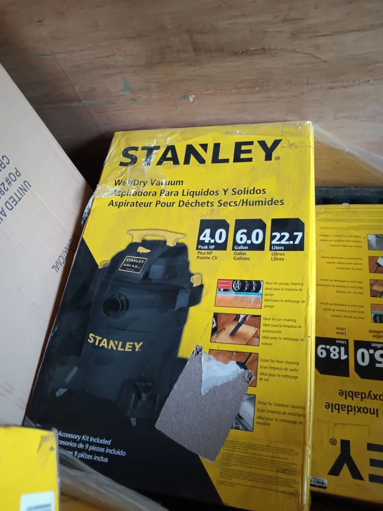 Selling a Stanley Wet/Dry Vacuum with 4.0 peak HP and a 6-gallon capacity. It's great for garage cleaning, car detailing, and general floor cleaning. Includes accessories like extension wands, crevice nozzle, floor nozzle, gulper nozzle, hose, clamp ring, disposable filter bag, foam filter, reusable filter, and user manual. Comes with the original box! Stanley shop vac 6-gallon 4 horsepower sales for $105 then tax included in stores. Delivery available for an extra fee.