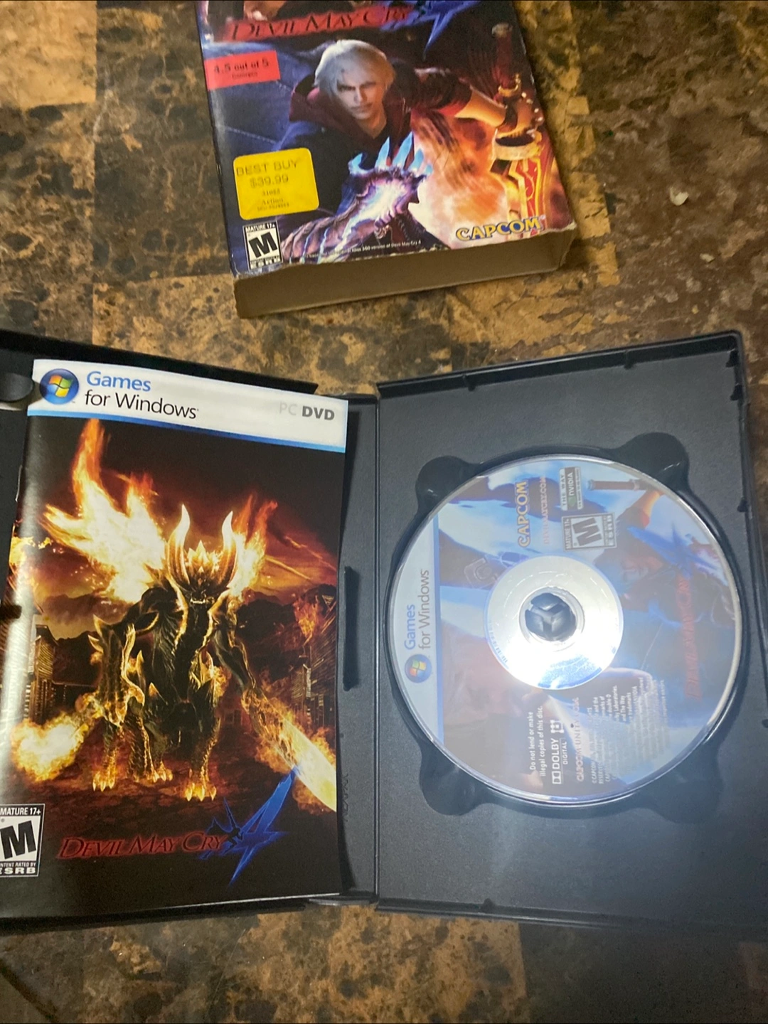 Selling Devil May Cry 4 for PC! It's in good condition and comes with the original case and disc. The game is rated M for Mature. Originally priced at $39.99 at Best Buy!