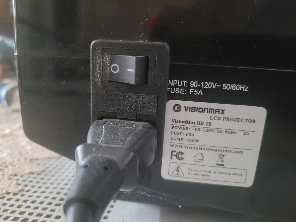 Selling a Visionmax HD-4K LCD Projector. It requires 90-120V~ 50/60Hz and uses a F5A fuse.