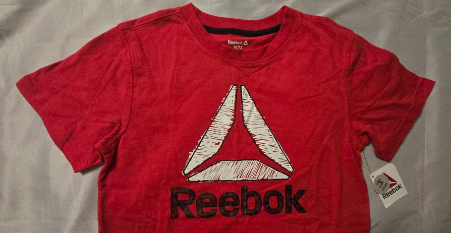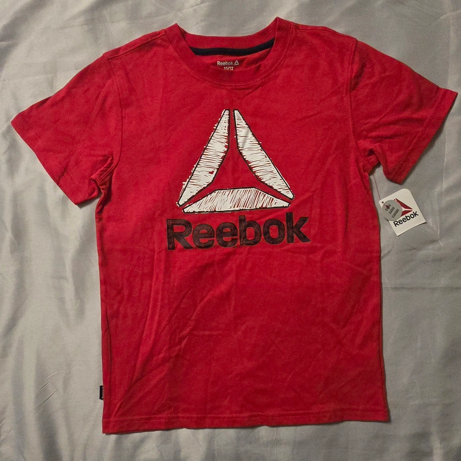 Selling a brand new authentic bright red Reebok T-shirt in size 10/12. It features the classic Reebok logo on the front. Perfect for sports or casual wear!