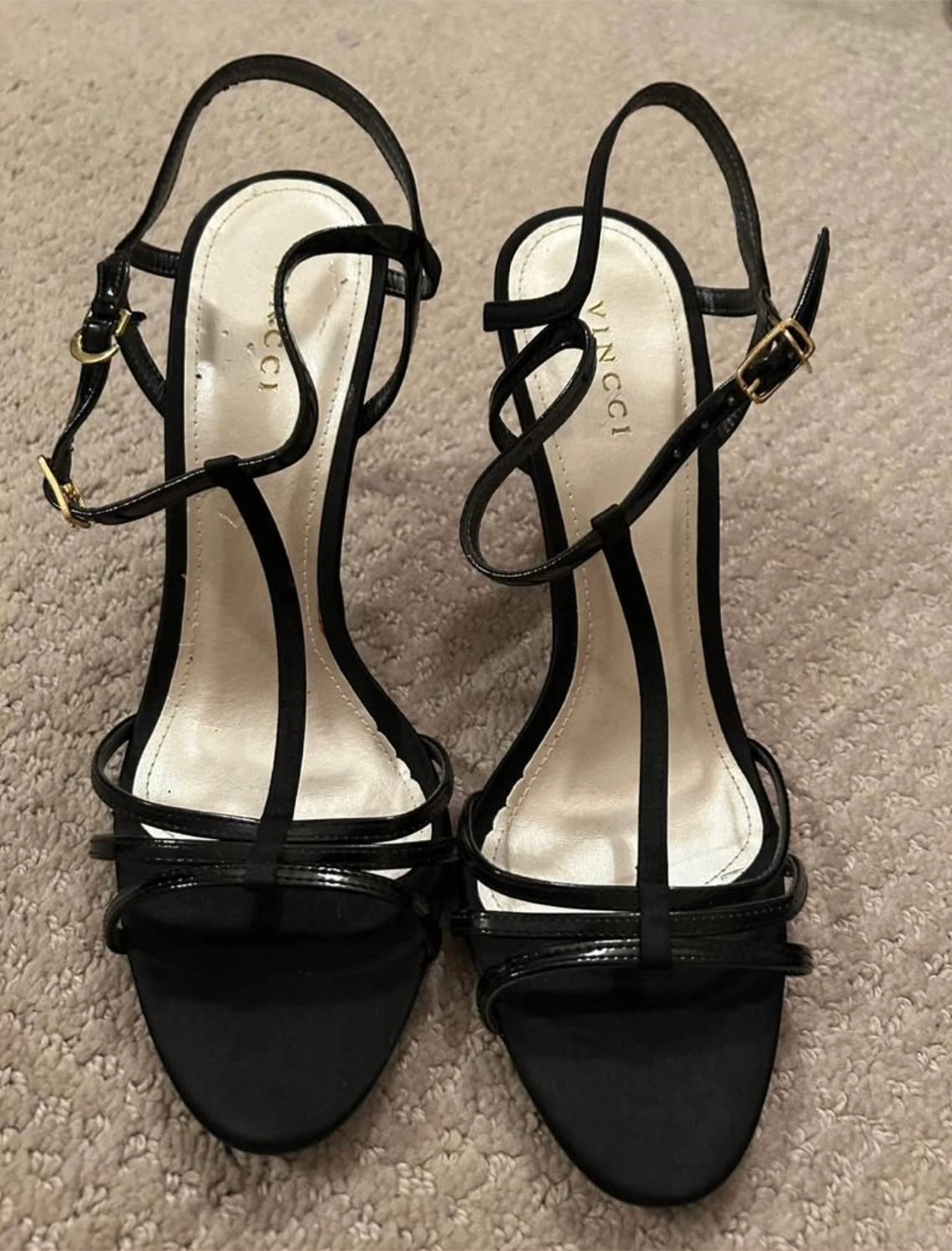 Selling a pair of Vincci black heels in size 7. The heels feature a strappy design and are perfect for dressing up any outfit