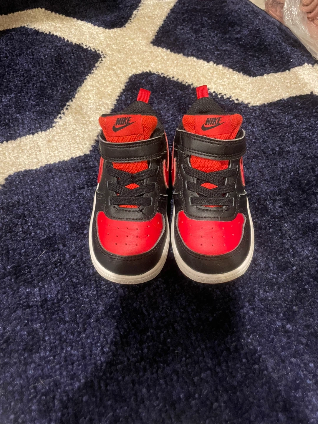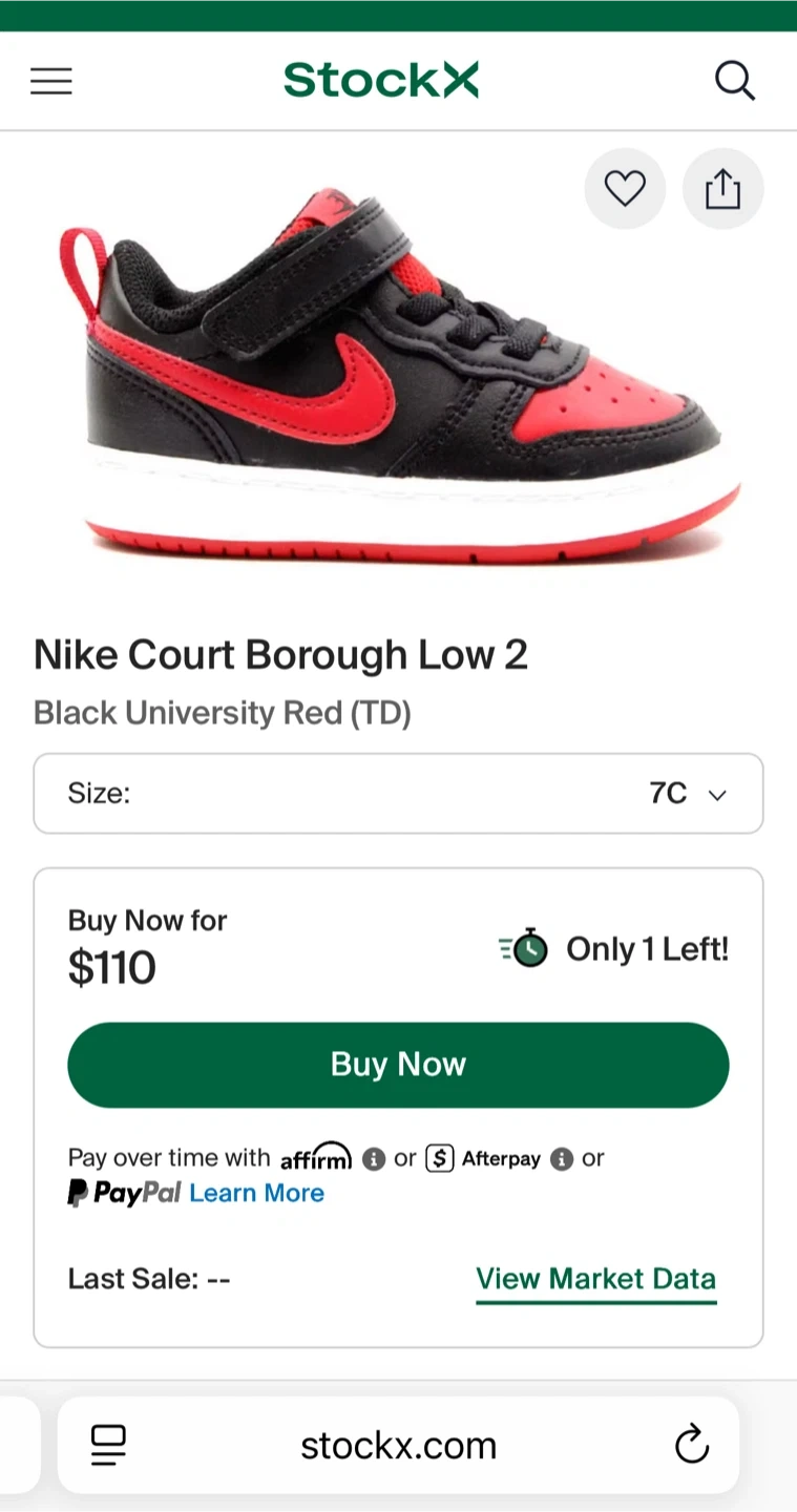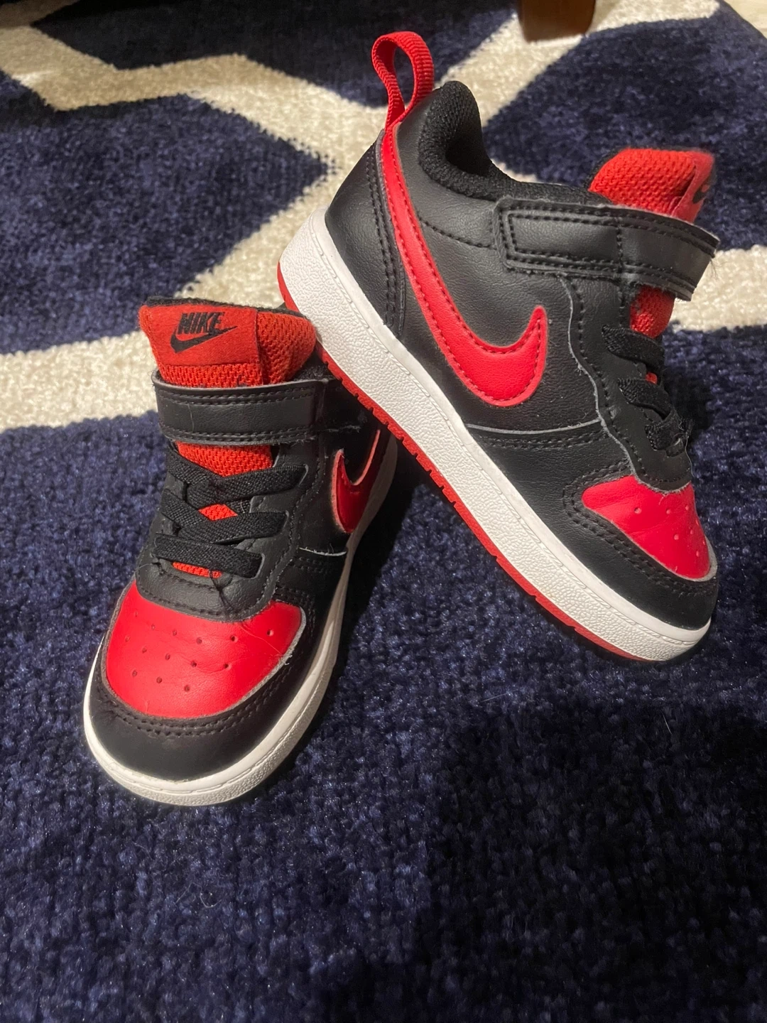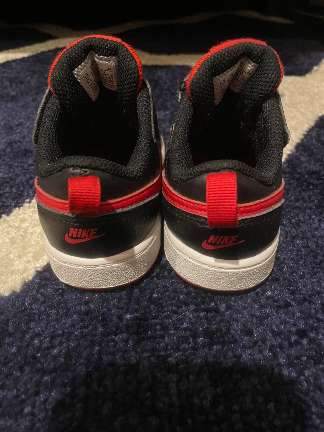 Nike Toddler Boy's Court Borough Low 2 Black/University Red/White Size 7C Worn once inside for a family gathering. In excellent, clean condition. Located in Staten Island, NY 10312. Local delivery available and can meet in some parts of Brooklyn for a small additional charge.