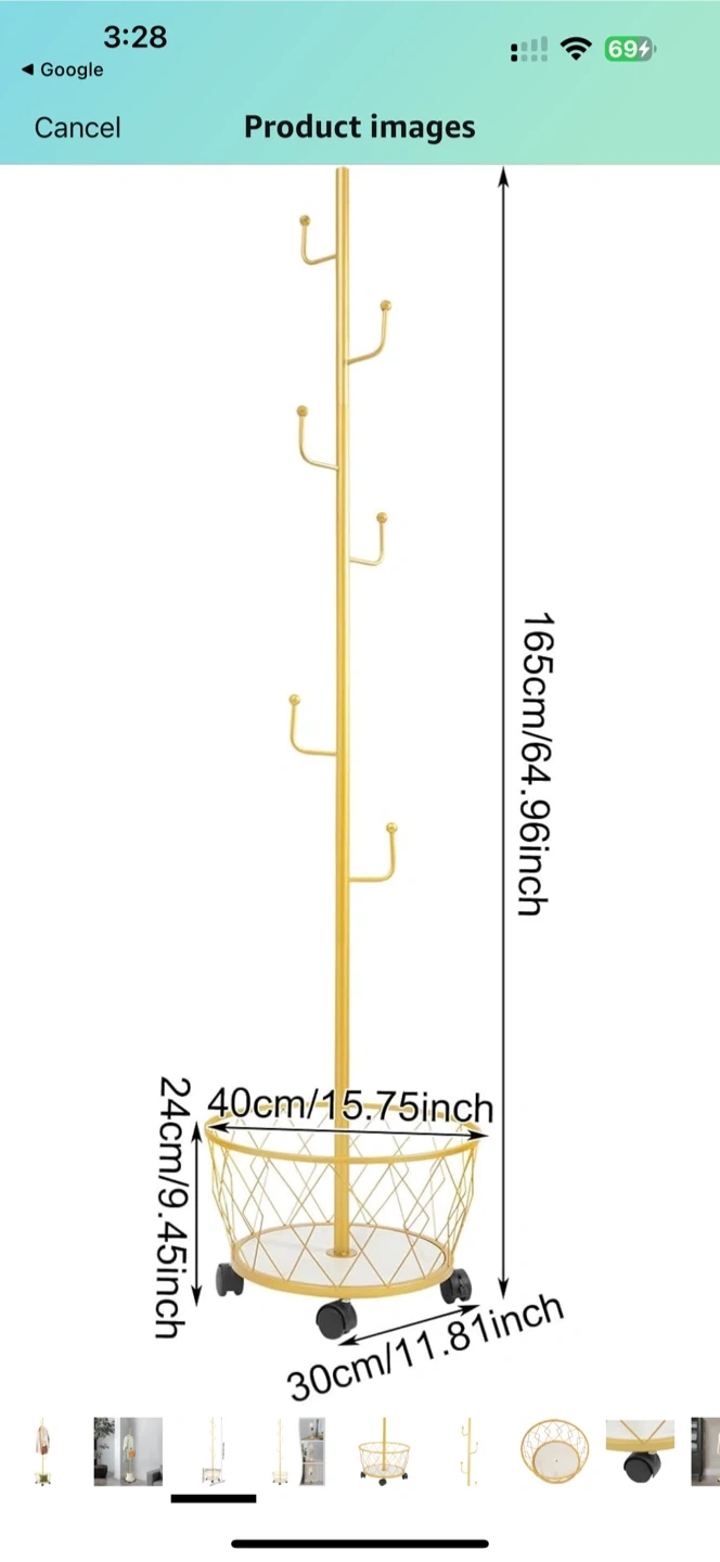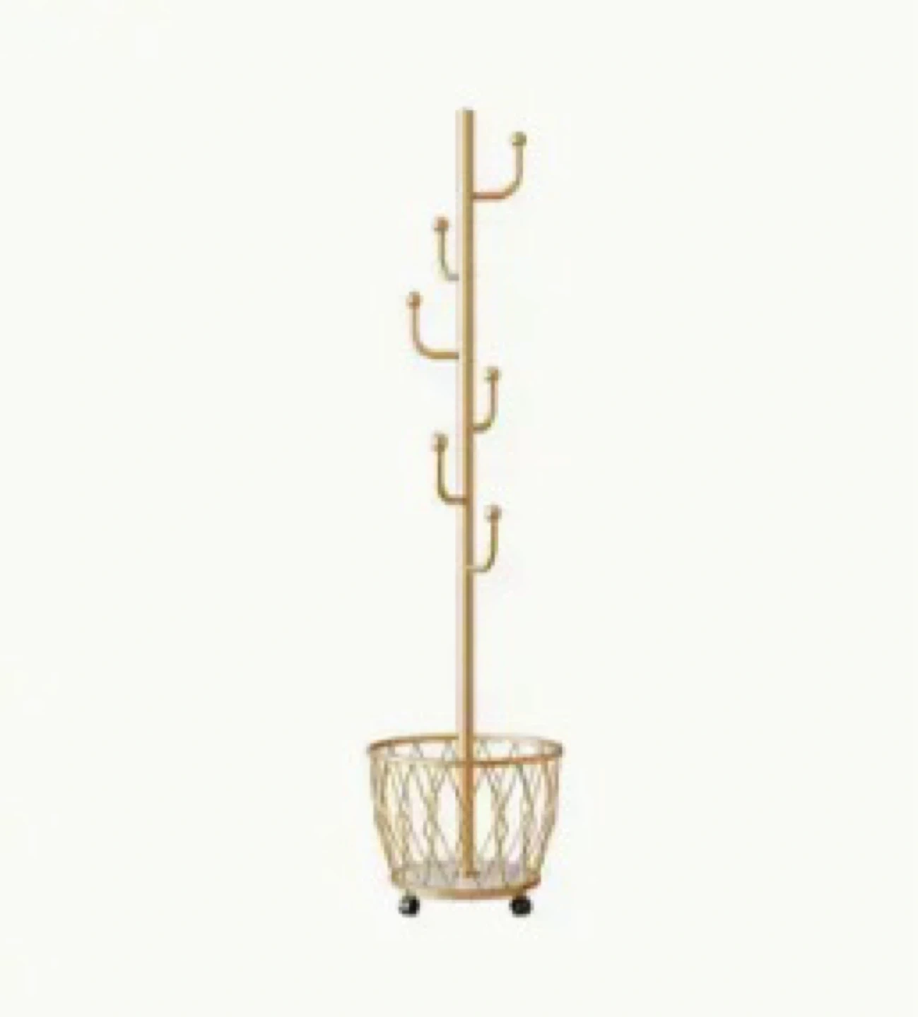 Looking to declutter your entryway? This CNCest coat rack is perfect for hanging coats, scarves, hats, and bags. It features a handy storage basket at the bottom and comes in a stylish gold colour. Dimensions are approximately 165cm tall, with a 40cm basket diameter.