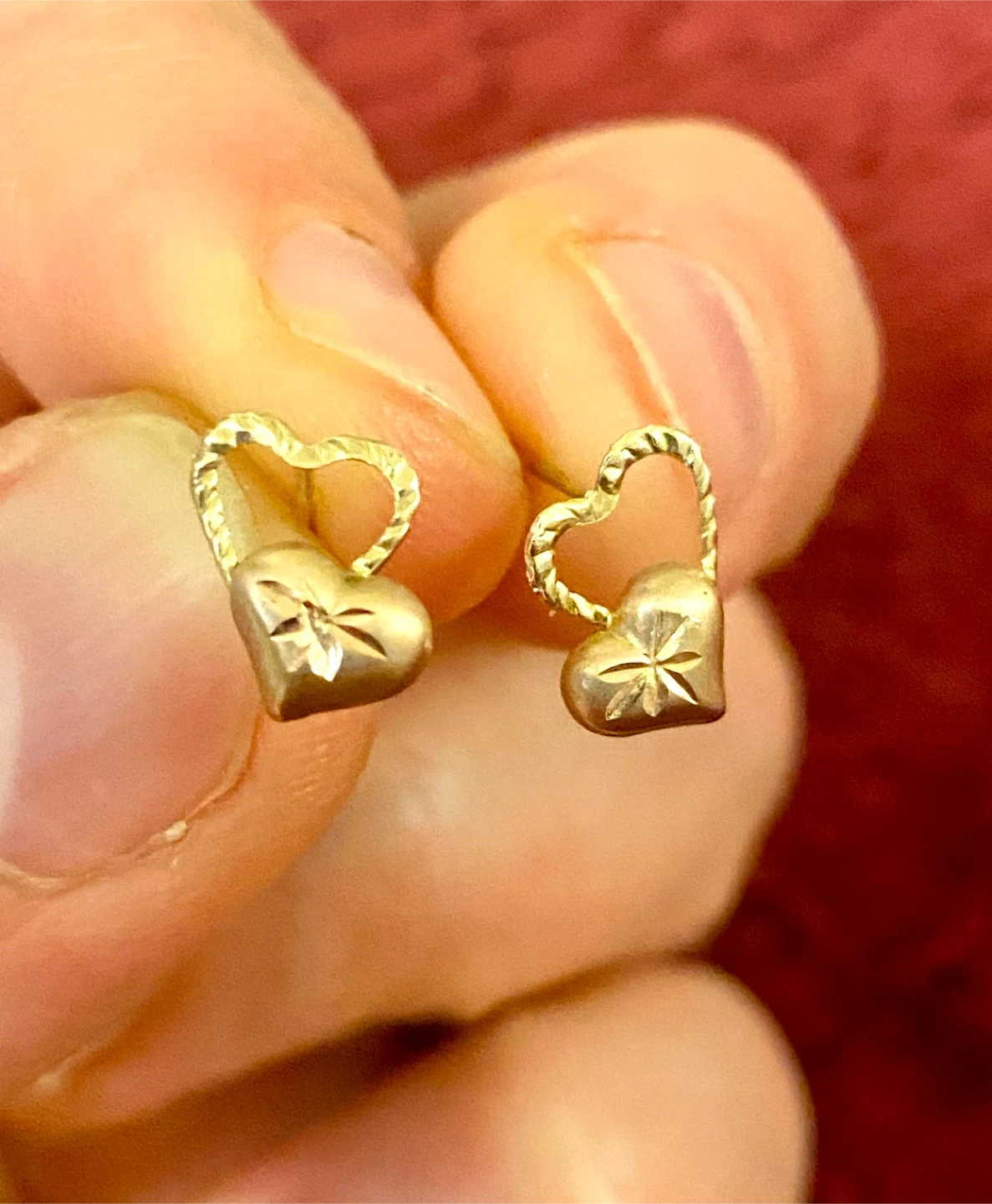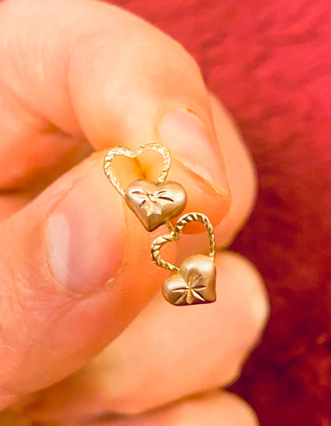 Cute gold heart stud earrings! They're in great condition and would make a lovely addition to any jewelry collection 14 K Gold