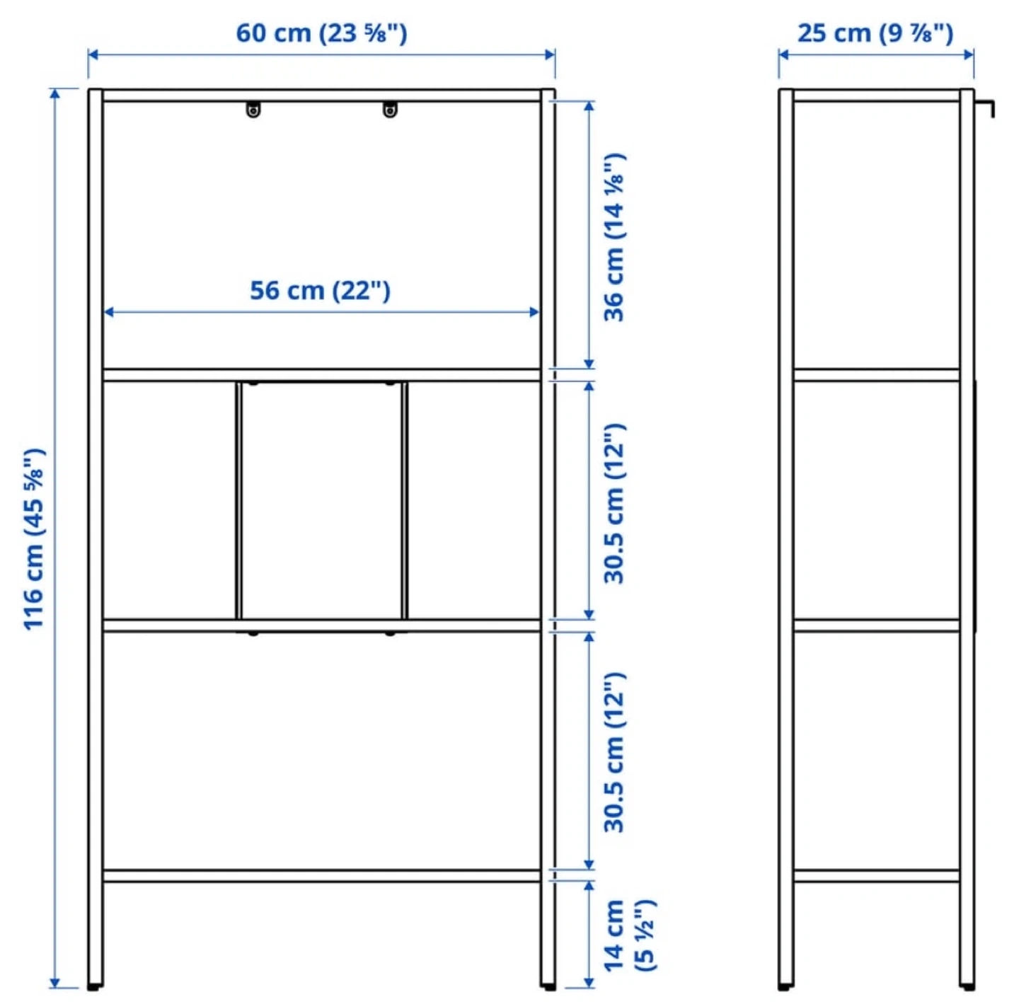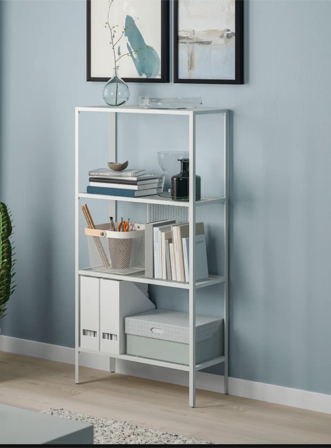 Selling a white IKEA Vittsjö shelving unit! It's perfect for adding some extra storage and display space to any room. Key specs: - Dimensions: 60 cm (23 5/8") wide, 25 cm (9 7/8") deep, and 116 cm (45 5/8") high - Features four shelves for ample storage - Lightweight and easy to move around One fir 15$, two for 25$