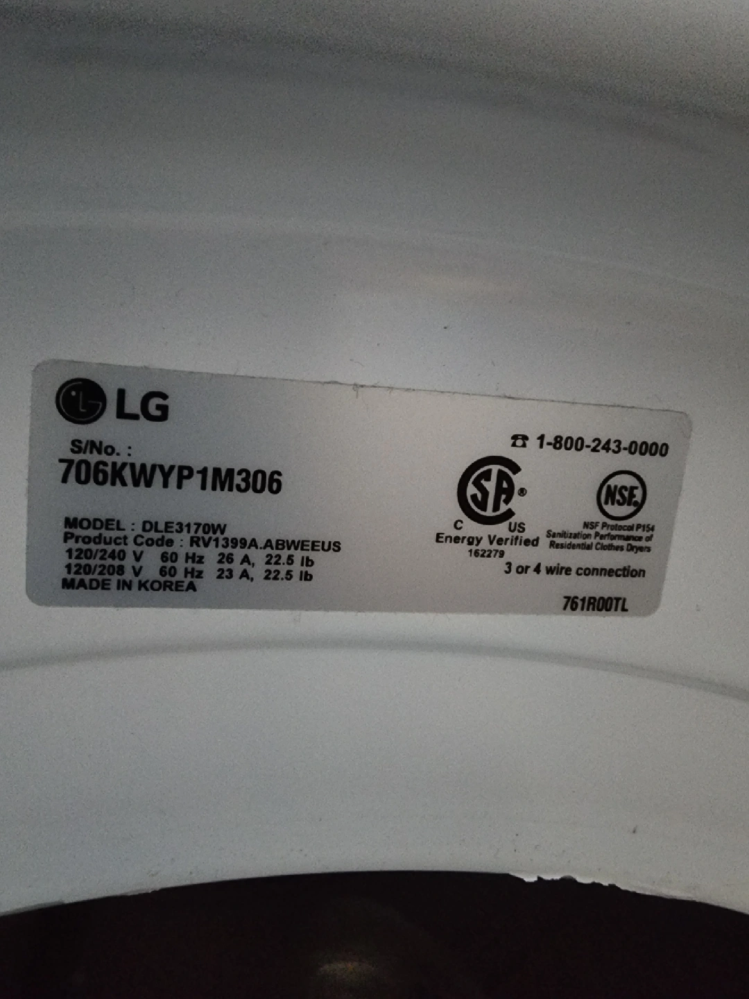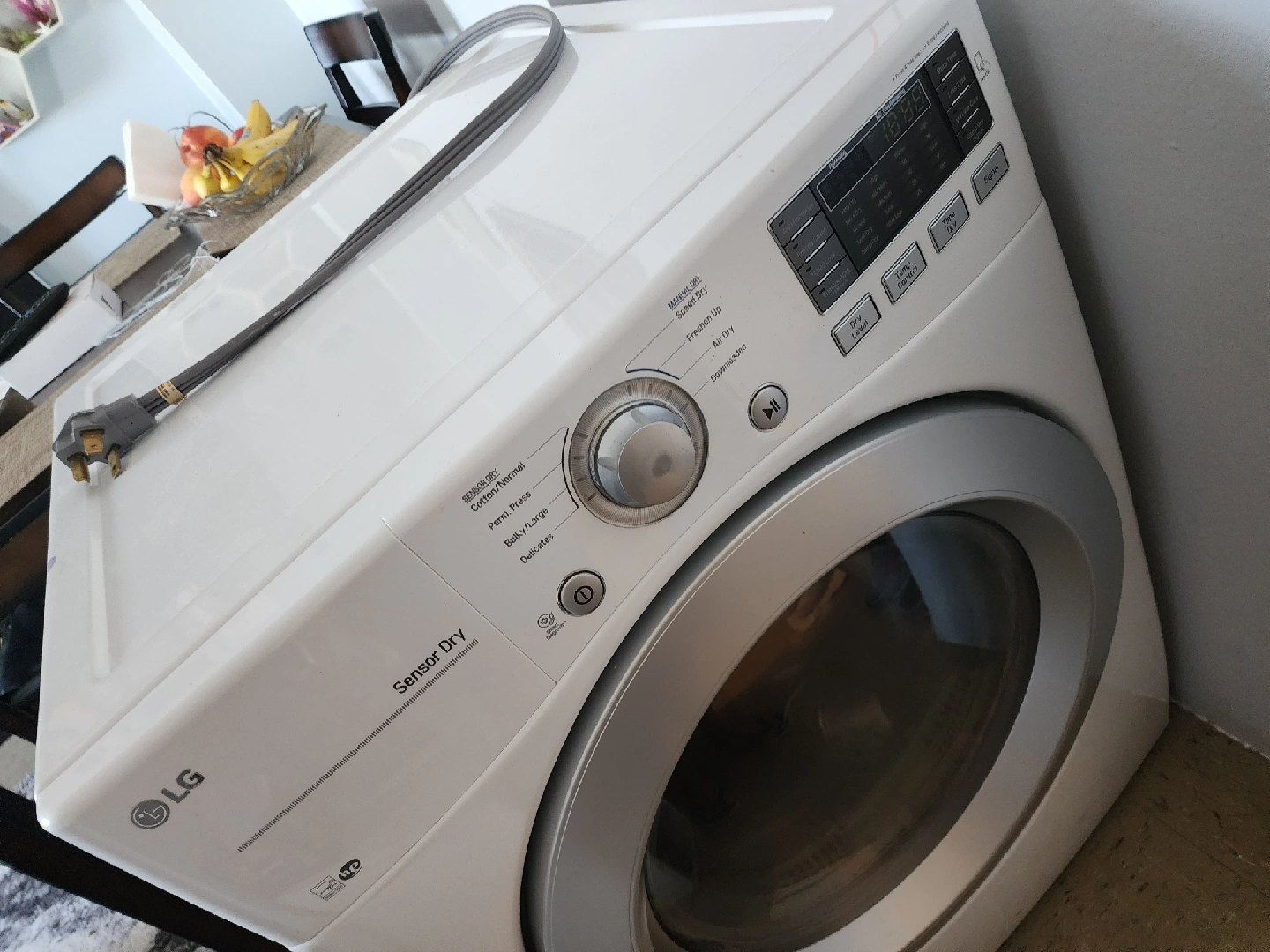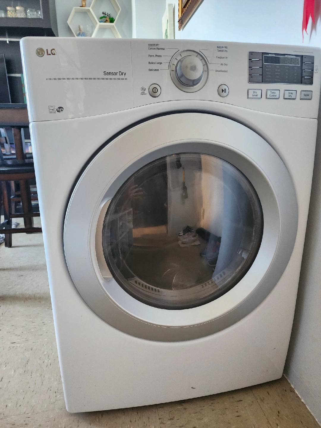 Selling a white LG Sensor Dry electric dryer. The model number is DLE3170W. It's in great working condition and ready to go to a new home! requires 220v. outlet only for few hrs available tomorrow after 11 am it will be gone