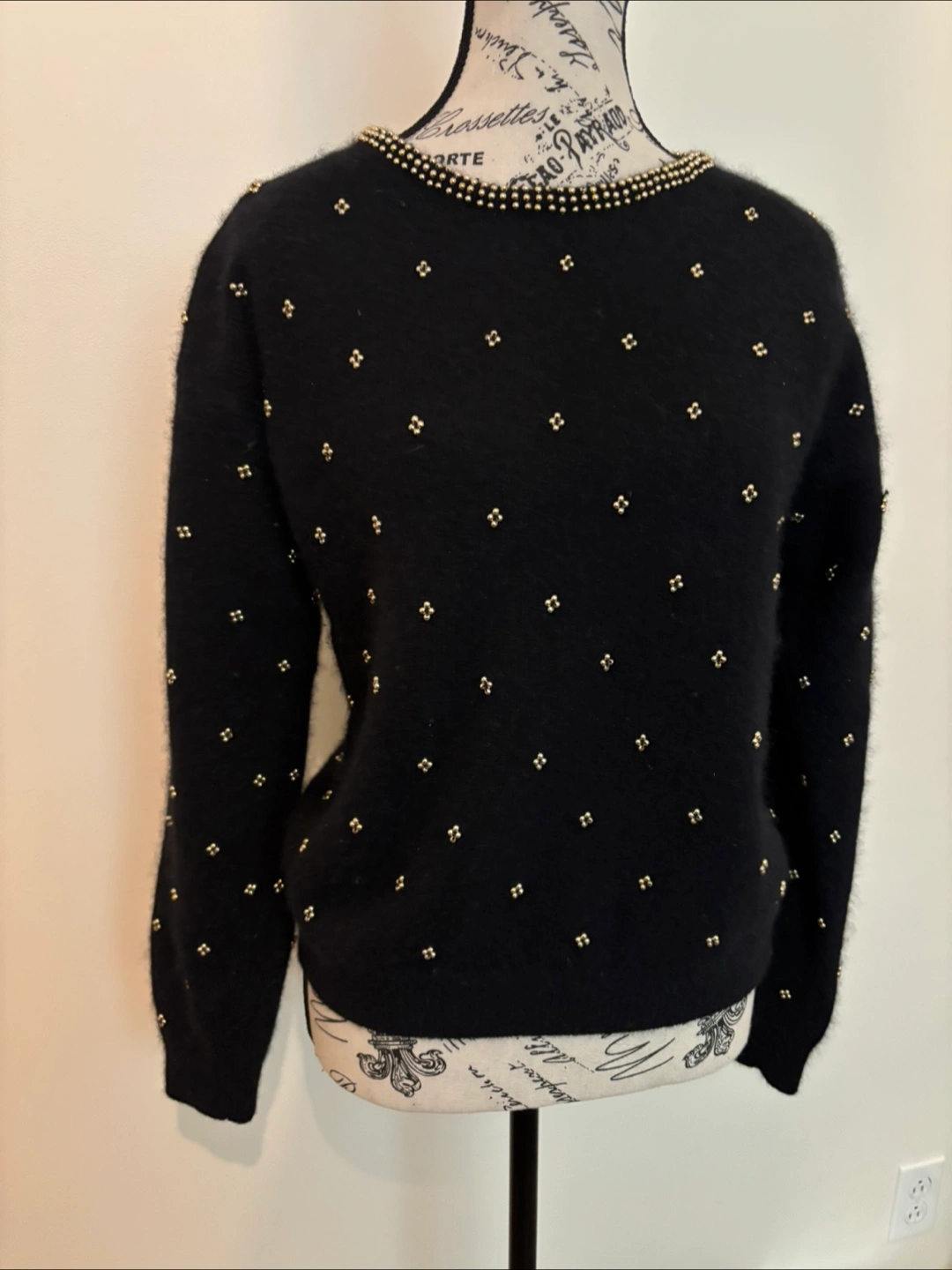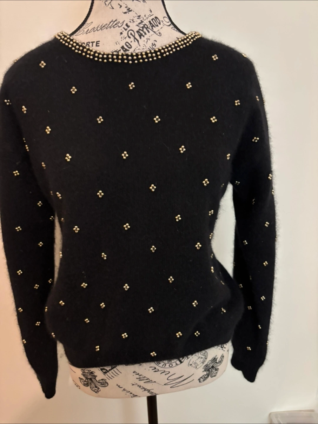 Vintage Black Beaded Sweater of lambs and angora wool