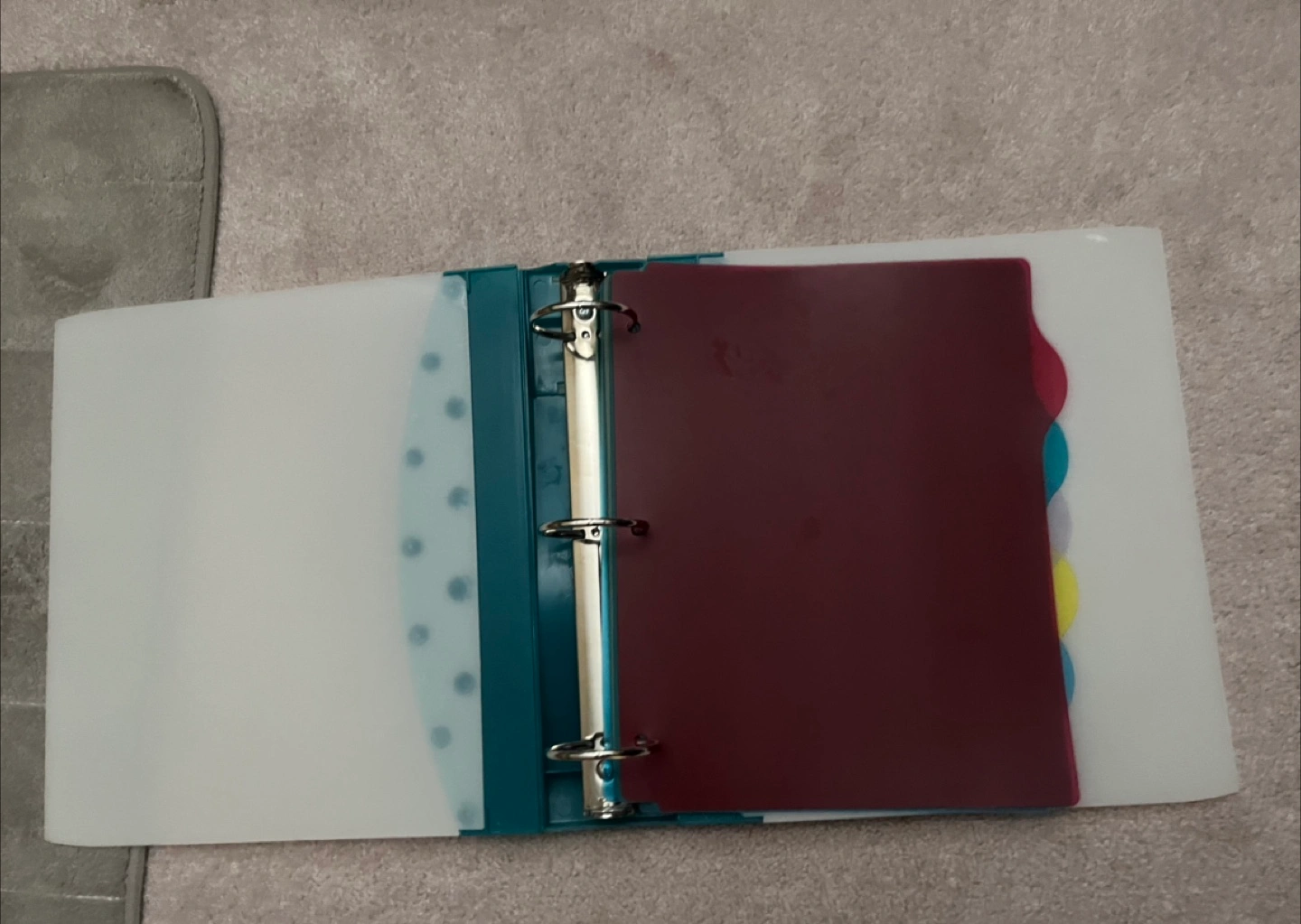 Sturdy binder made of strong material -with dividers included It's in excellent condition - like new Non-smoking & No pet household