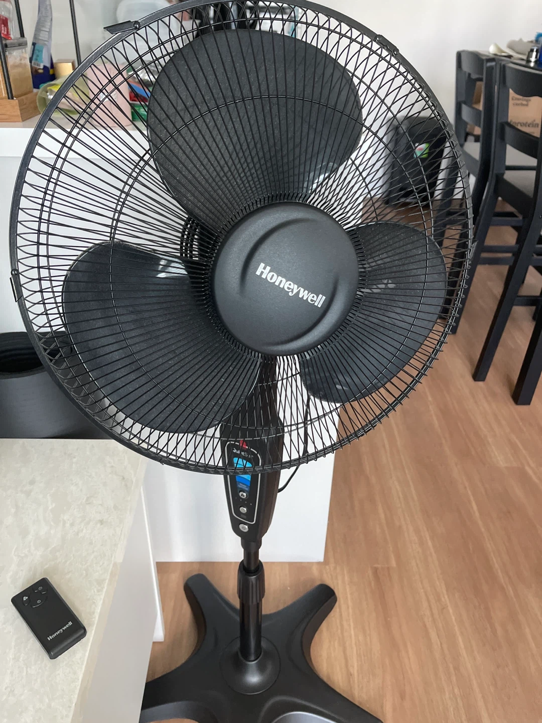 Selling a Honeywell stand up fan in black. It comes with a remote control for easy adjustments. Perfect for keeping cool during the summer months!