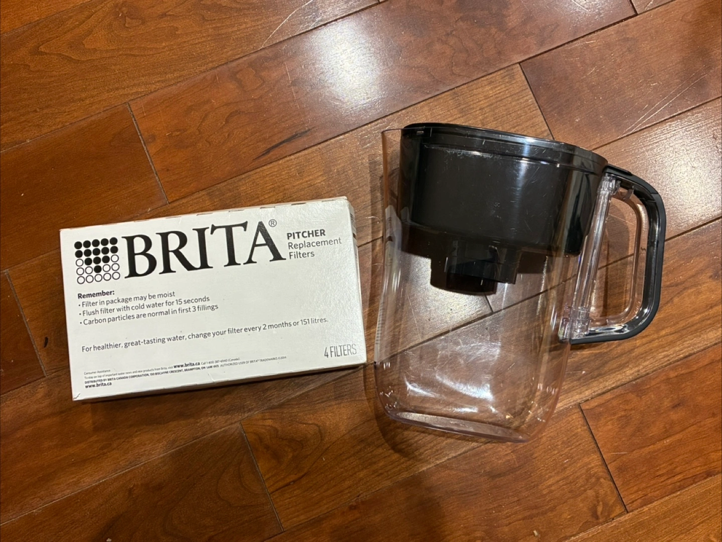 Selling a used Brita pitcher, in okay condition (some scratches, see pics) with a pack of new unopened, 4 count Brita filters!