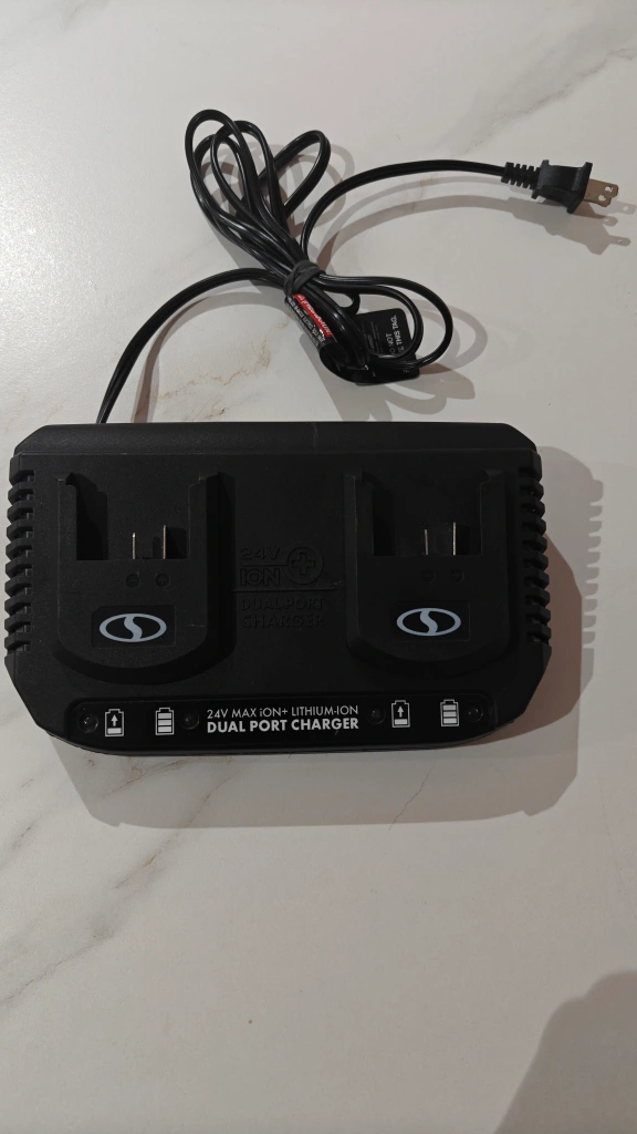 Selling a Snow Joe 24V MAX ION+ Lithium-Ion Dual Port Charger. It's in great condition and ready to power your Snow Joe tools! it's a new item but got minor scratches hence selling cheap.