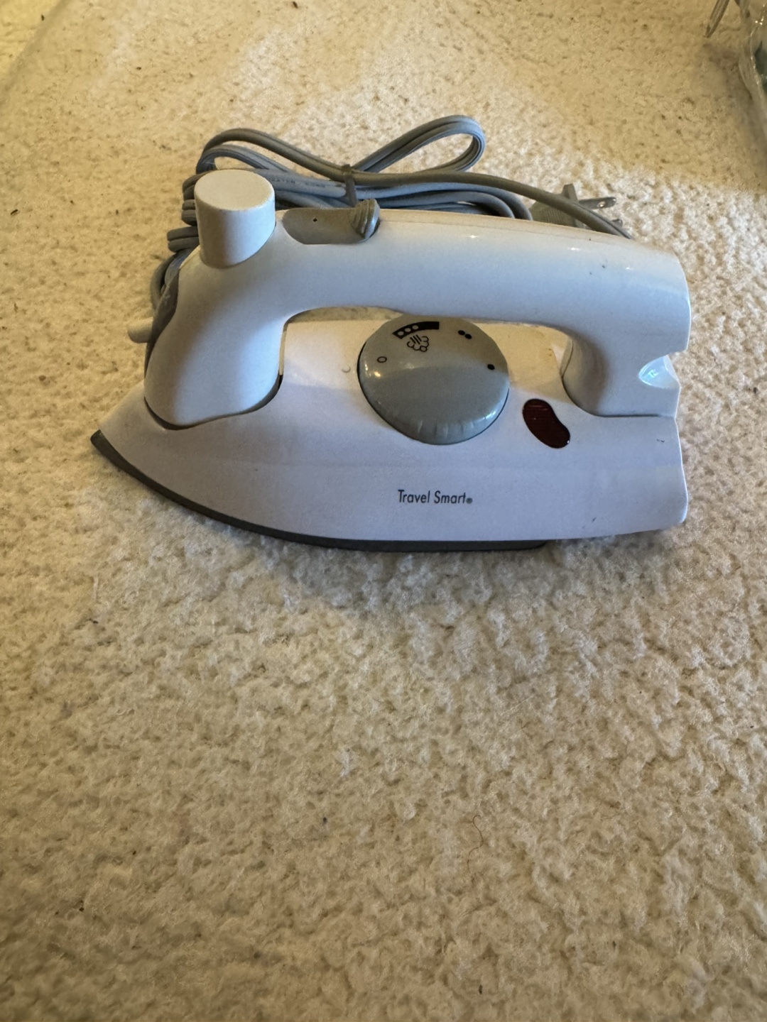 I'm selling a Travel Smart compact travel iron. It's in great condition and comes with a carrying case. Perfect for travel or small ironing jobs!