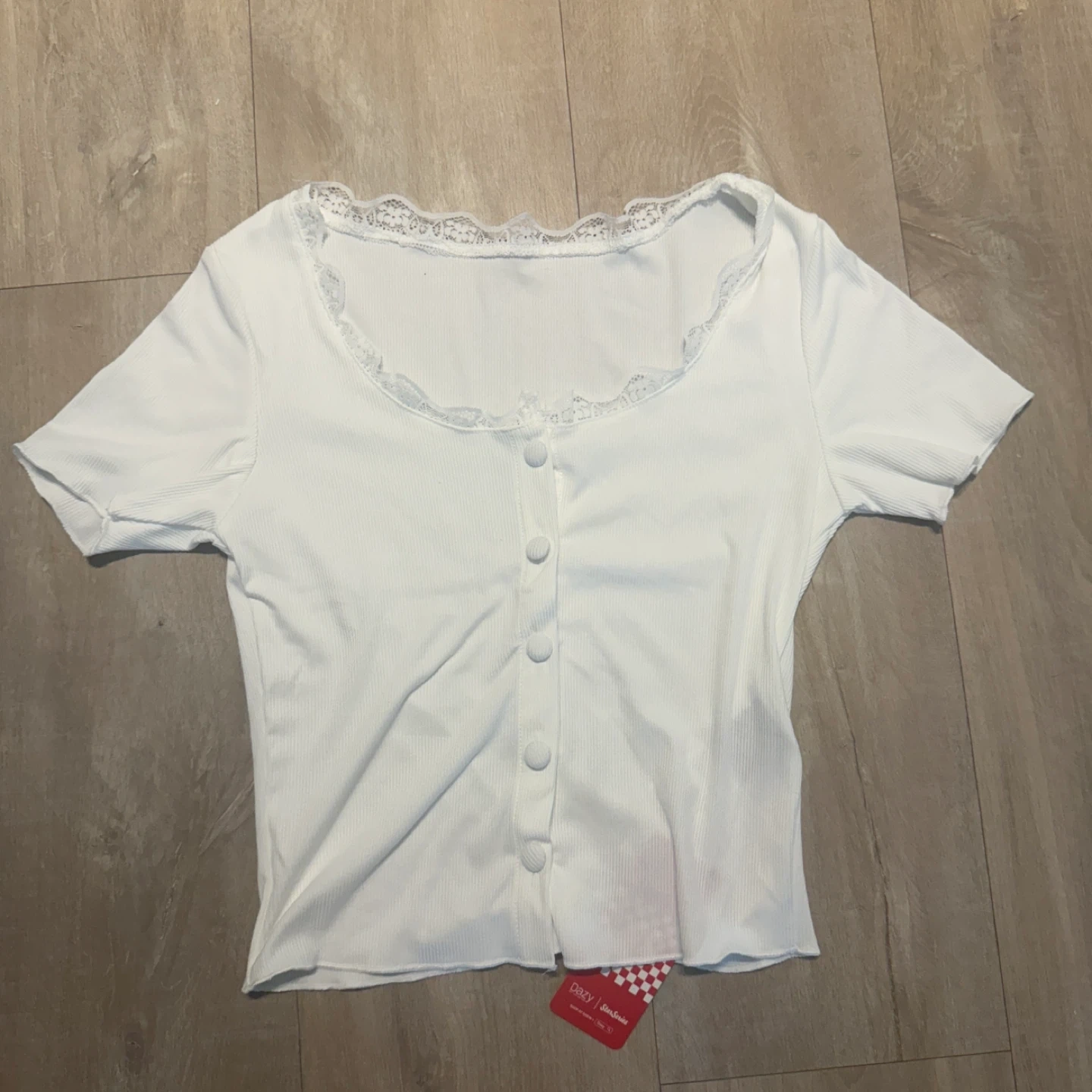 White t shjrt with lace trim🤍