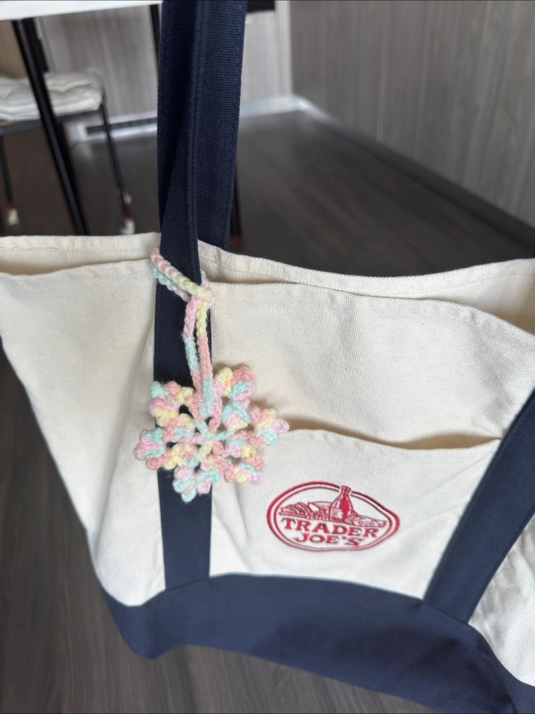 100% Handmade crochet bag charm snowflake Brand new and ready to go * Tote is not included Pickup only at V5H0J8 Cash only Can ship at buyers expense