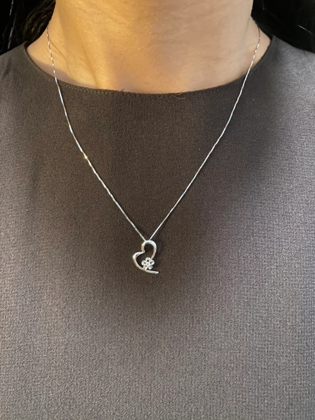 Beautiful 18k white gold necklace with a small diamond in the heart shaped pendant. The piece is guaranteed real solid 18K gold.