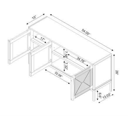 - Size: 26" H x 54.1" W x 15" D