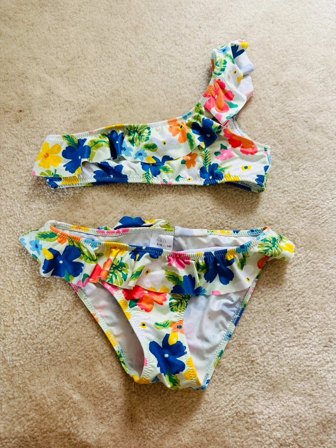 Super cute Zara floral swimsuit in size 9-10 (140)! It features a colourful floral design and a fun, frilly trim. Perfect for your little one's next trip to the pool or beach