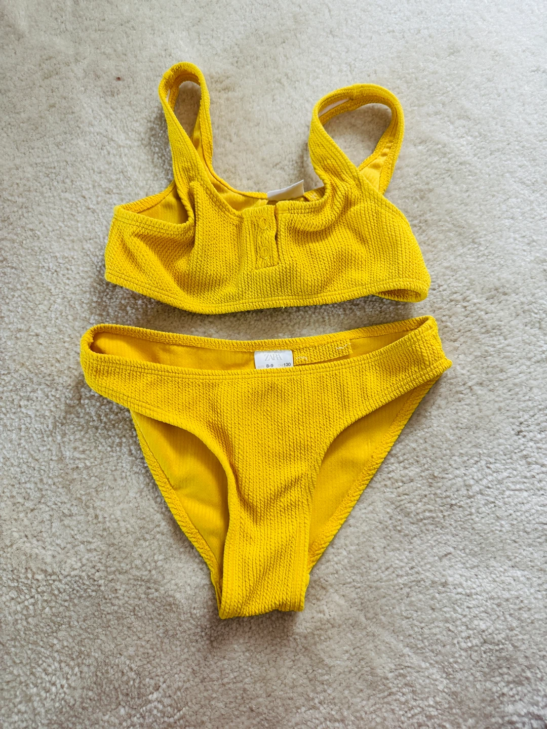 Selling a cute Zara bikini set! It's a bright yellow colour and size 8-9. Perfect for summer!
