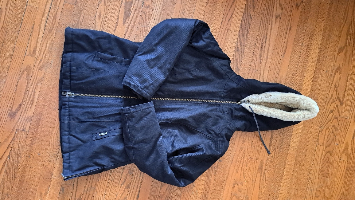 Here's a cozy black winter jacket from Hoodland! It features a faux fur-lined hood to keep you extra warm during those chilly Canadian winters. The coat is in great condition and ready for a new home!
